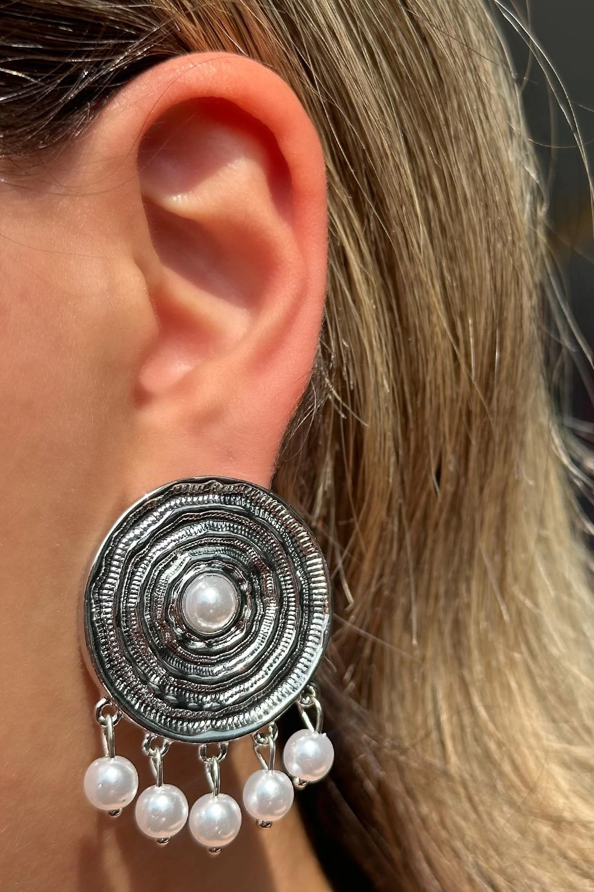 Gümüş Renk İnci Detaylı Küpe (Çift)