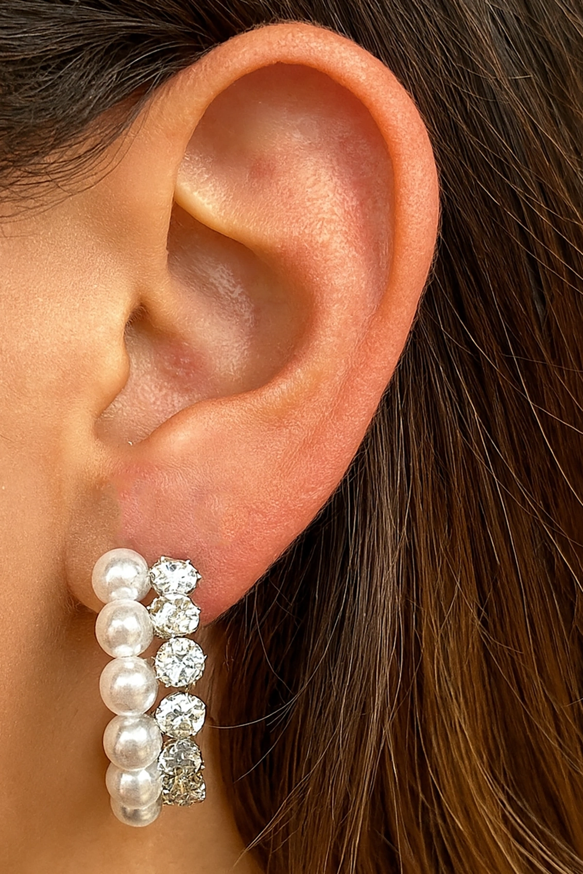 Gümüş Renk İnci Detaylı Küpe (Çift)