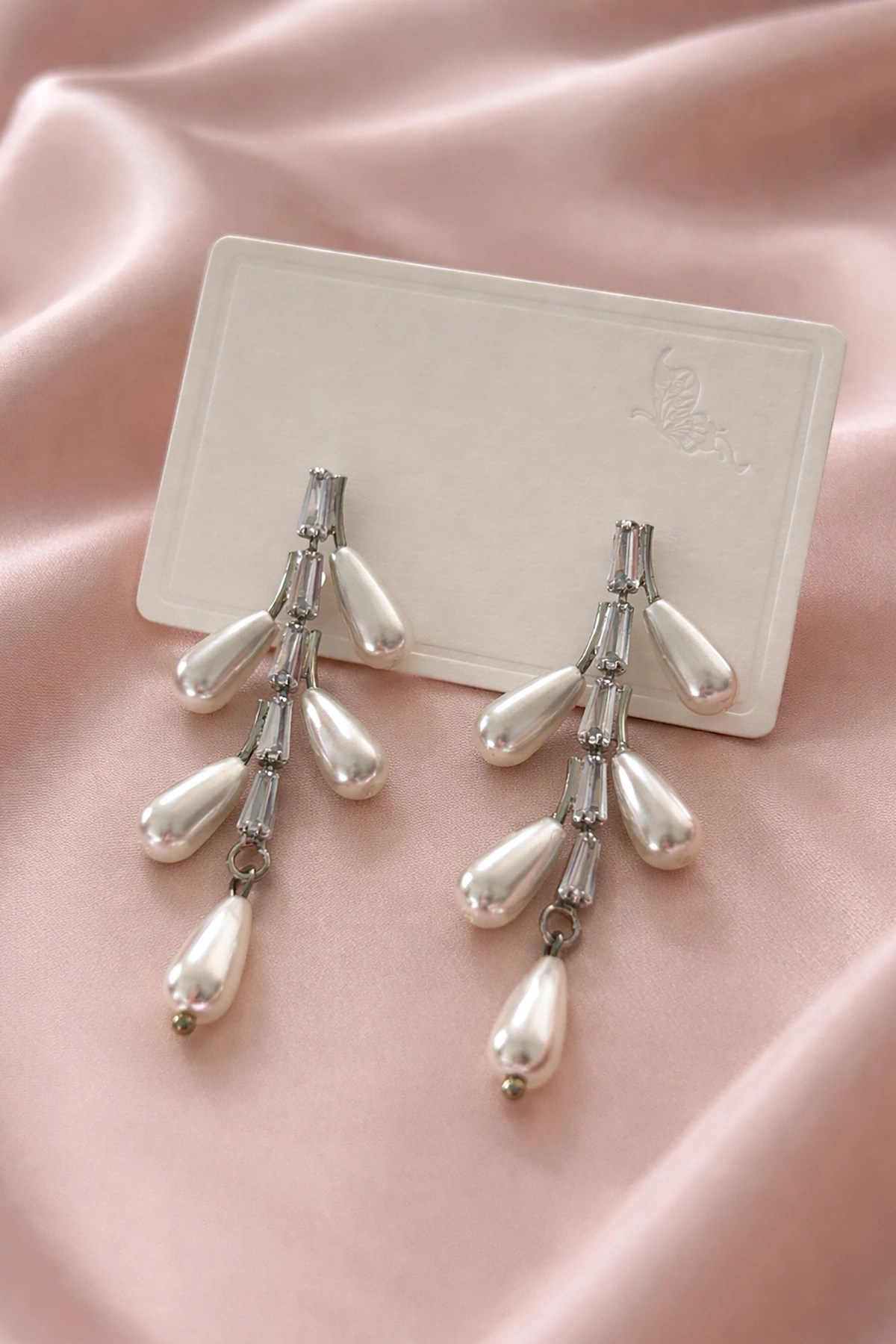 Gümüş Renk İnci Detaylı Sallantılı Küpe (Çift)