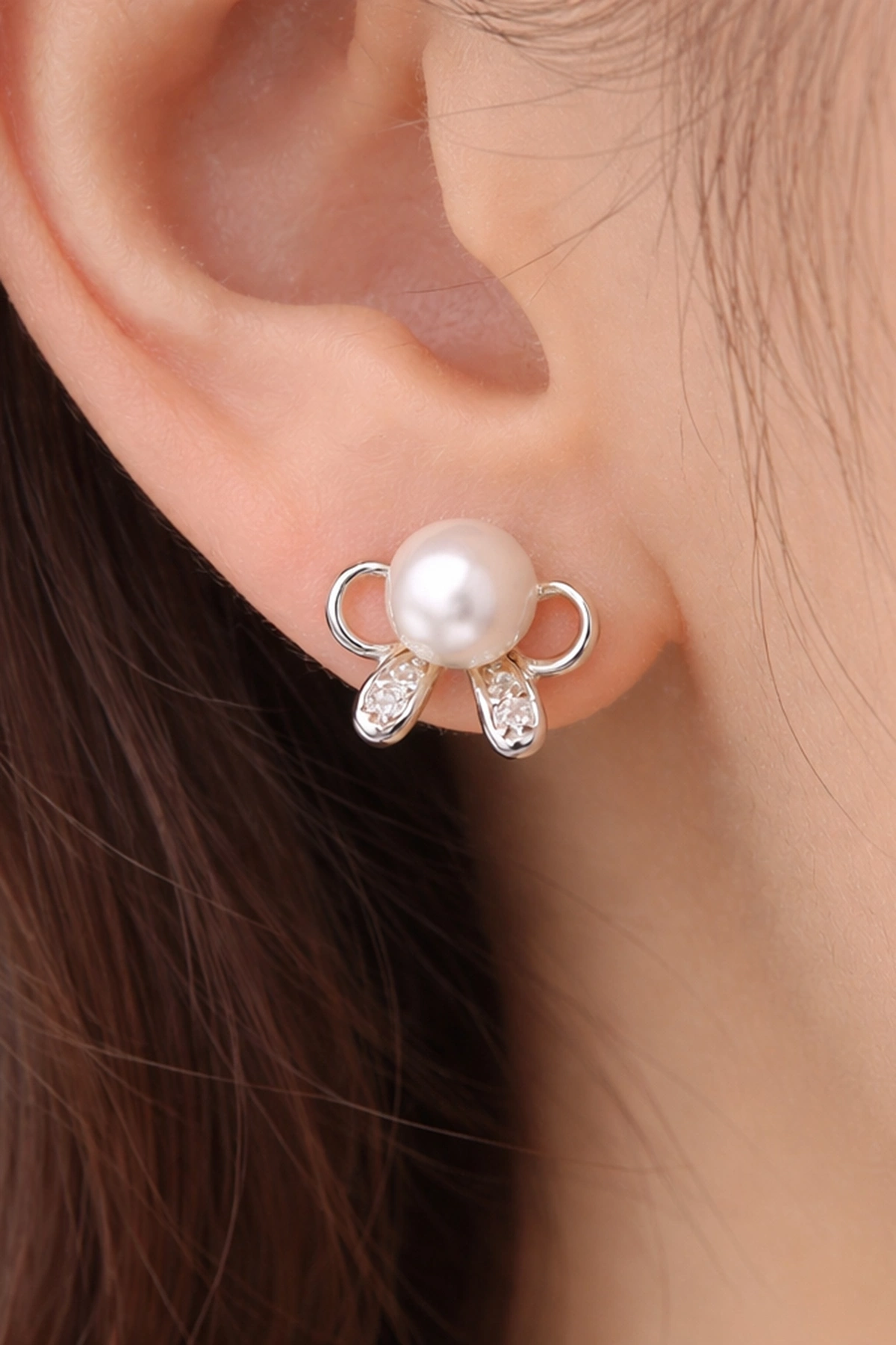 Gümüş Renk İnci Detaylı Xuping Küpe (Çift)