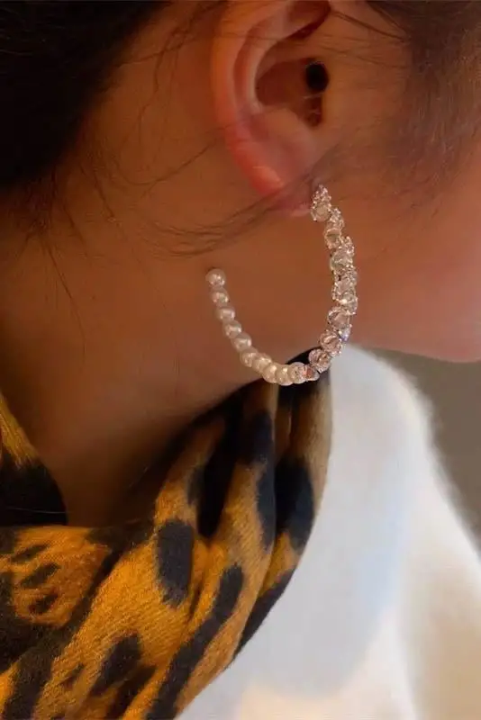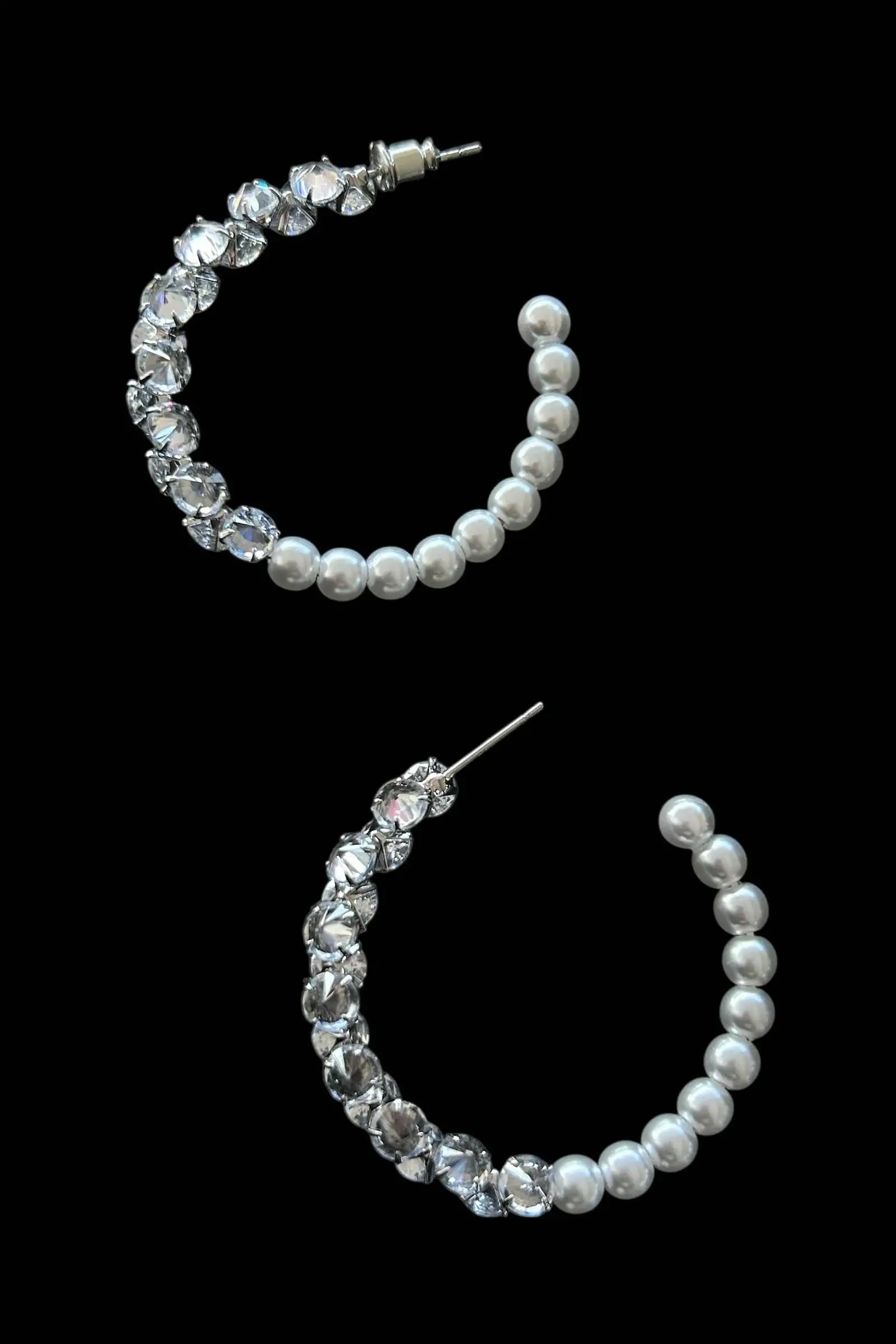 Gümüş Renk İnci Ve Taş Detaylı Halka Küpe (Çift)