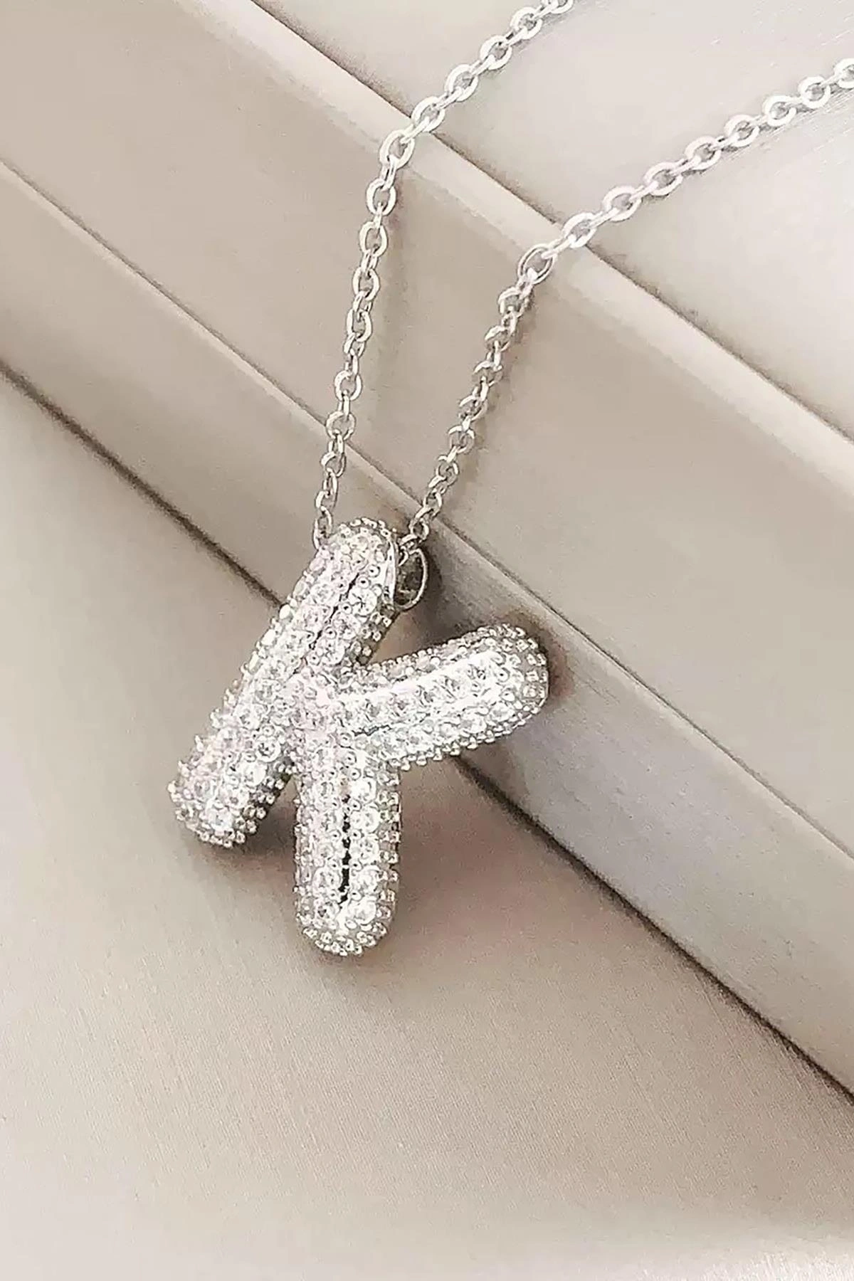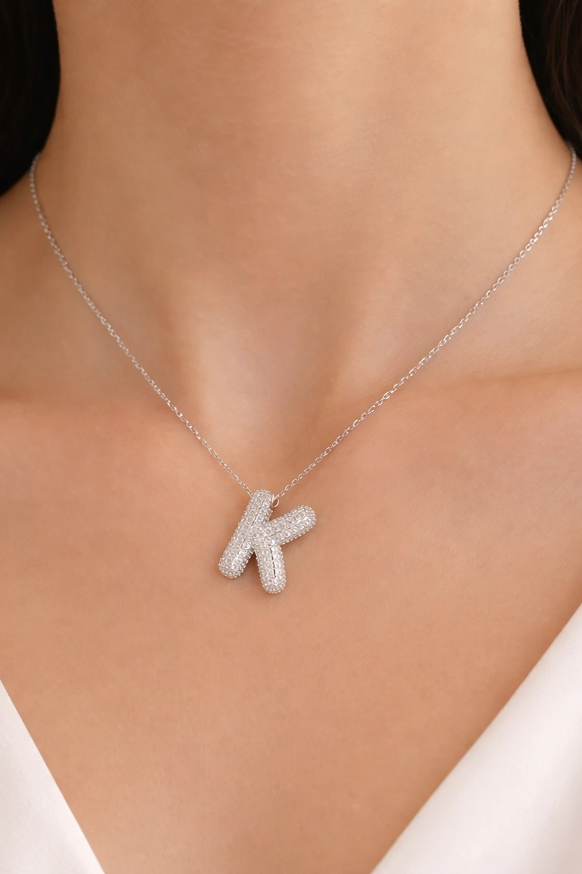 Gümüş Renk K Harf Taş Detaylı Çelik Kolye