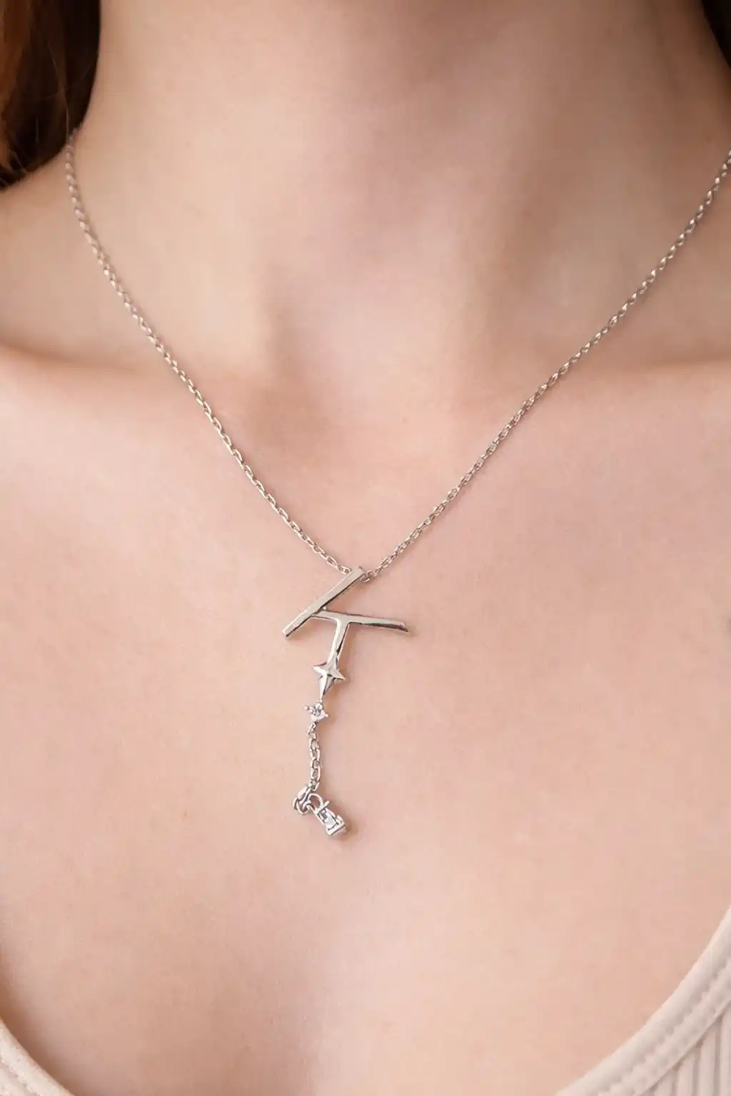 Gümüş Renk K Harfli Taş Detaylı Çelik Kolye