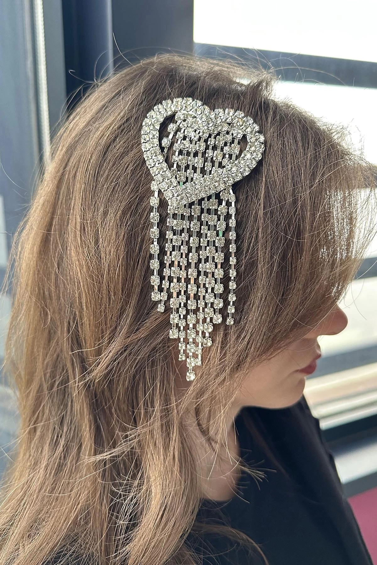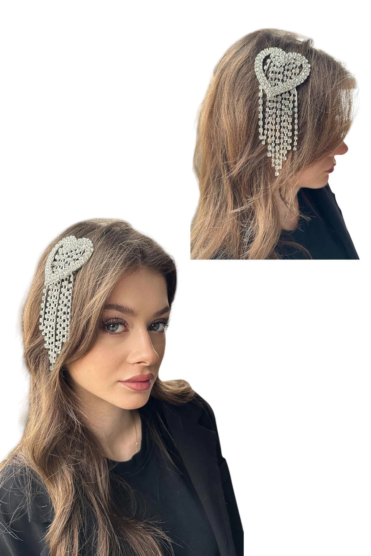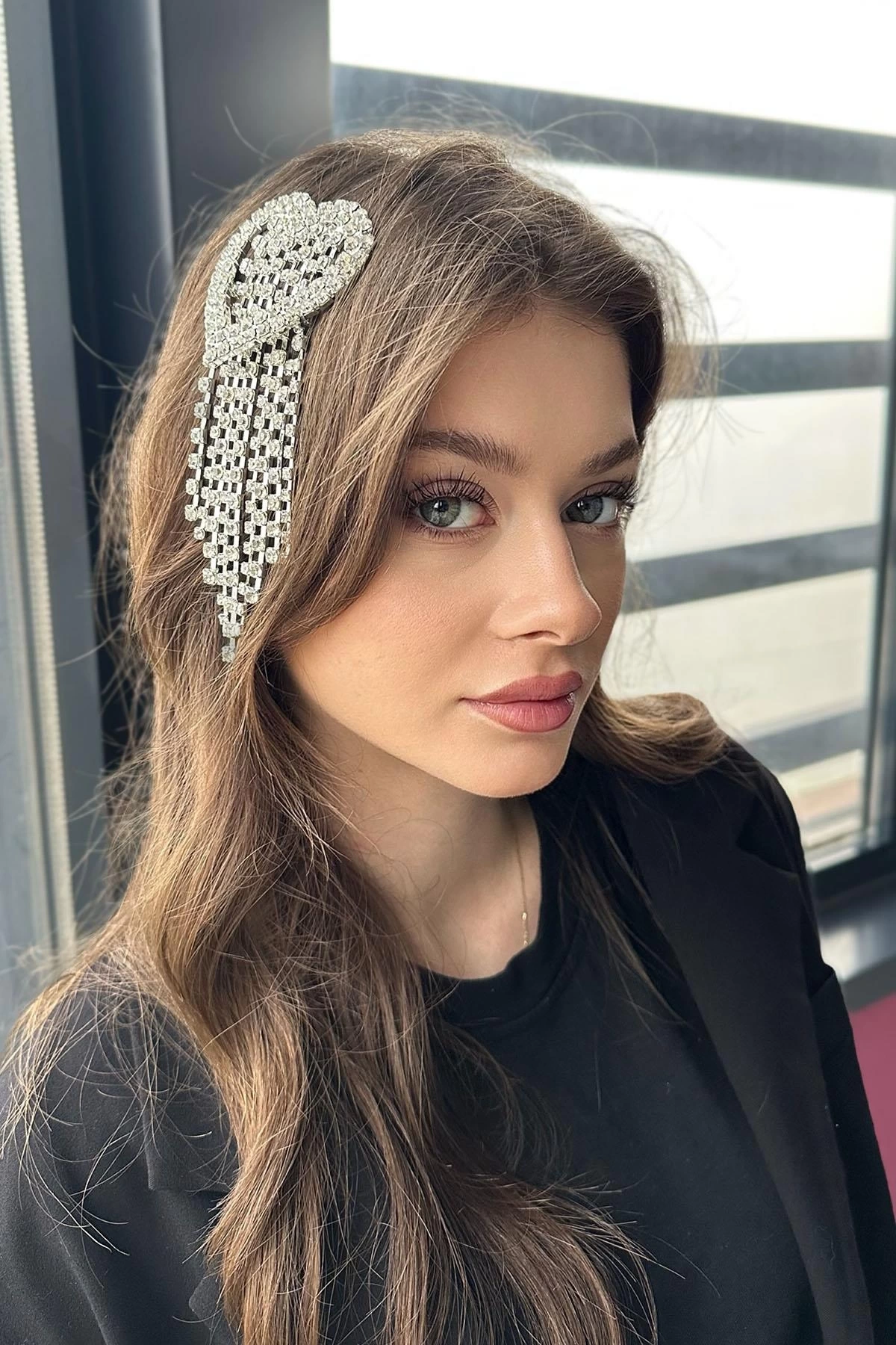 Gümüş Renk Kalp Detaylı Taşlı Tasarım Saç Aksesuarı