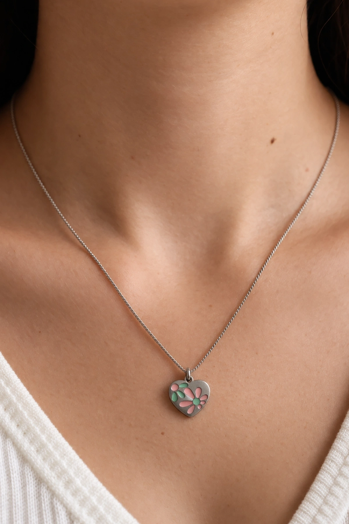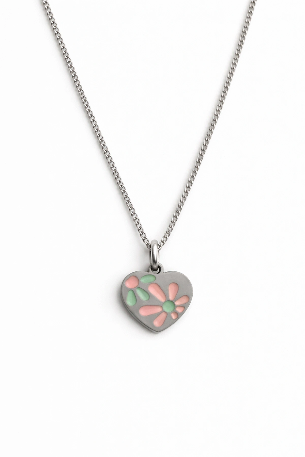 Gümüş Renk Kalp Figürlü Çelik Kolye