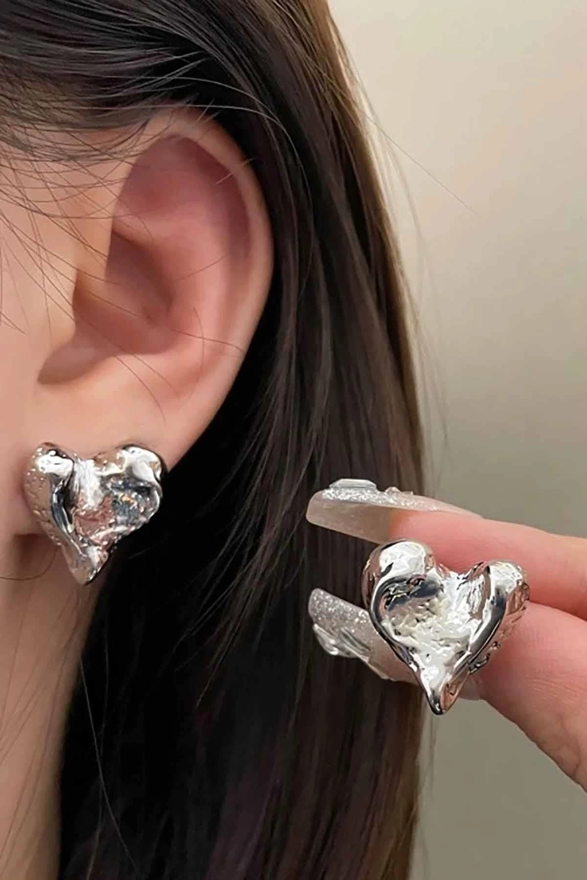 Gümüş Renk Kalp Figürlü Çelik Küpe (Çift)