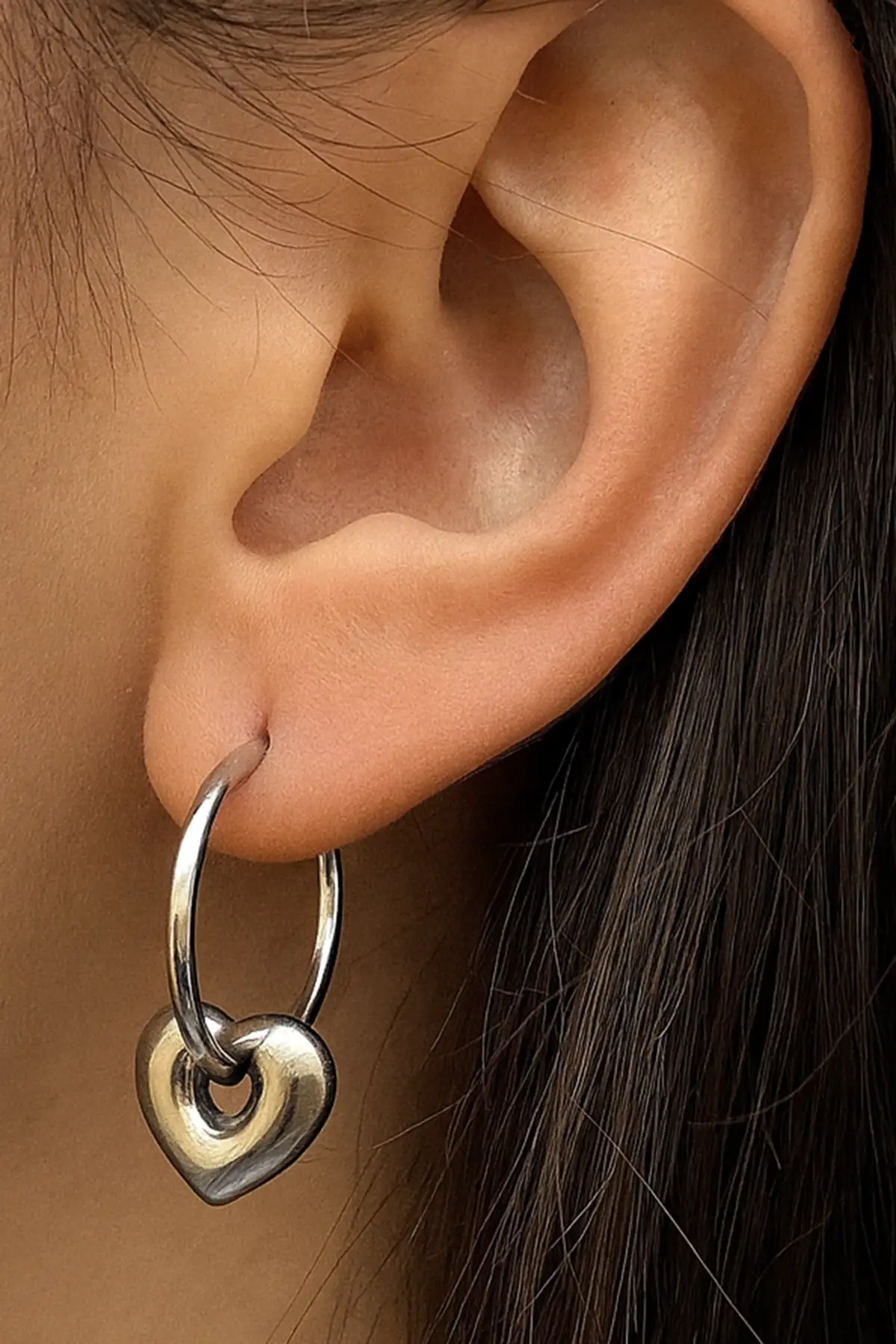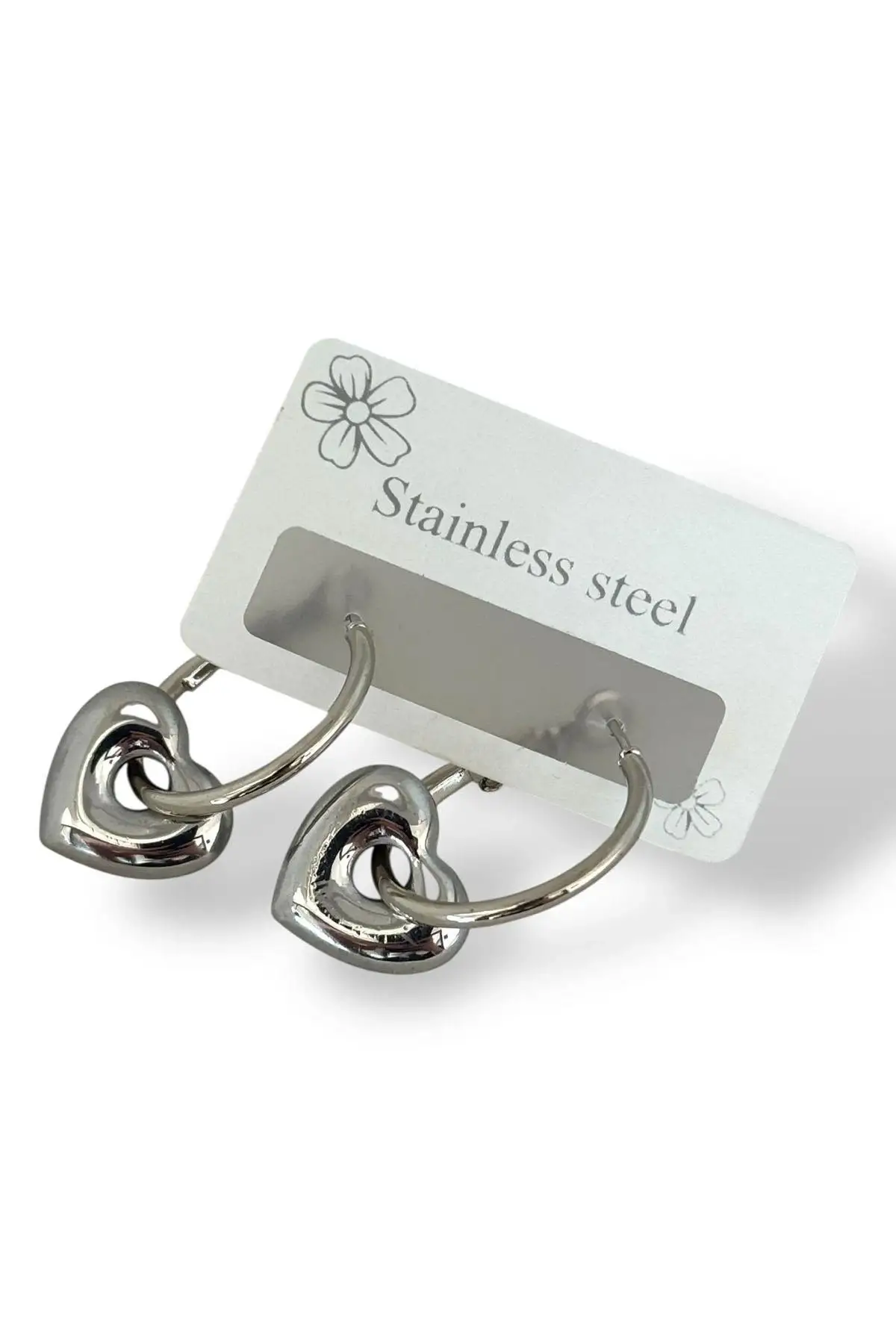 Gümüş Renk Kalp Figürlü Çelik Küpe (Çift)