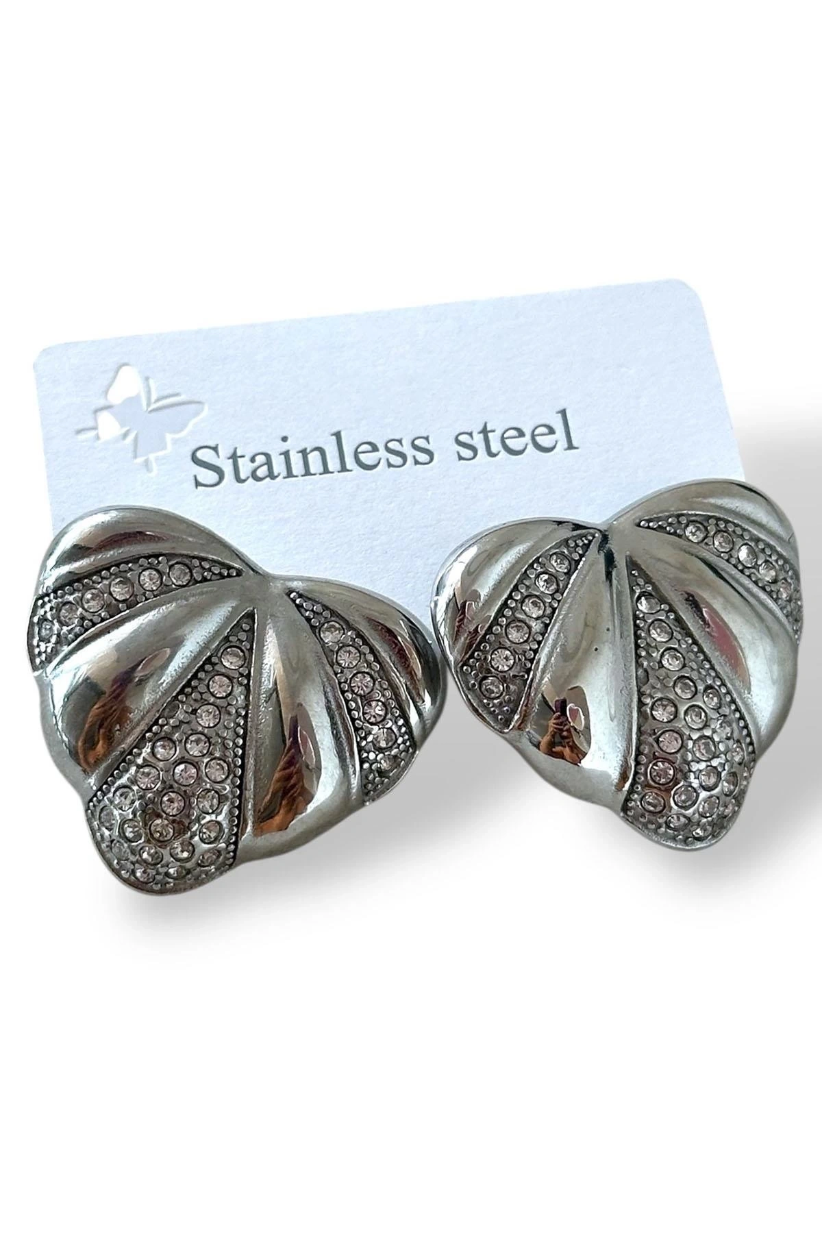 Gümüş Renk Kalp Figürlü Çelik Küpe (Çift)