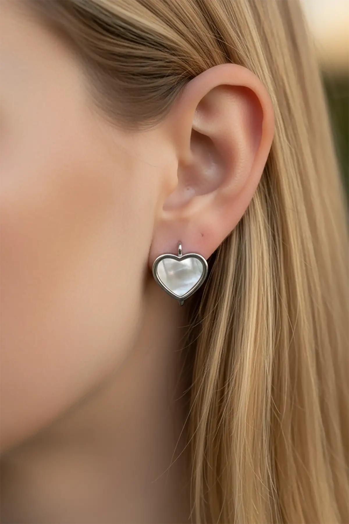 Gümüş Renk Kalp Figürlü Çelik Küpe (Çift)