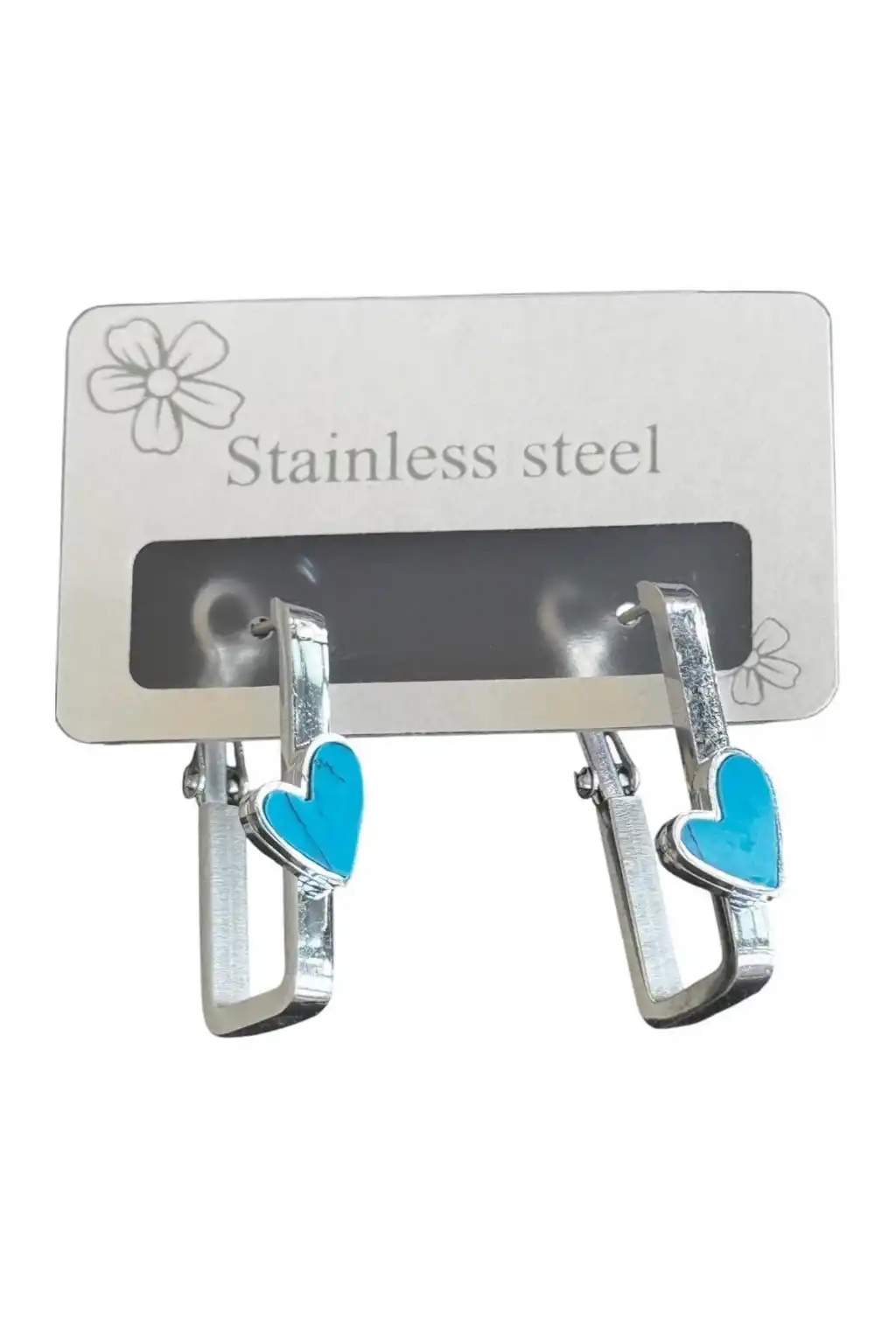 Gümüş Renk Kalp Figürlü Çelik Küpe (Çift)