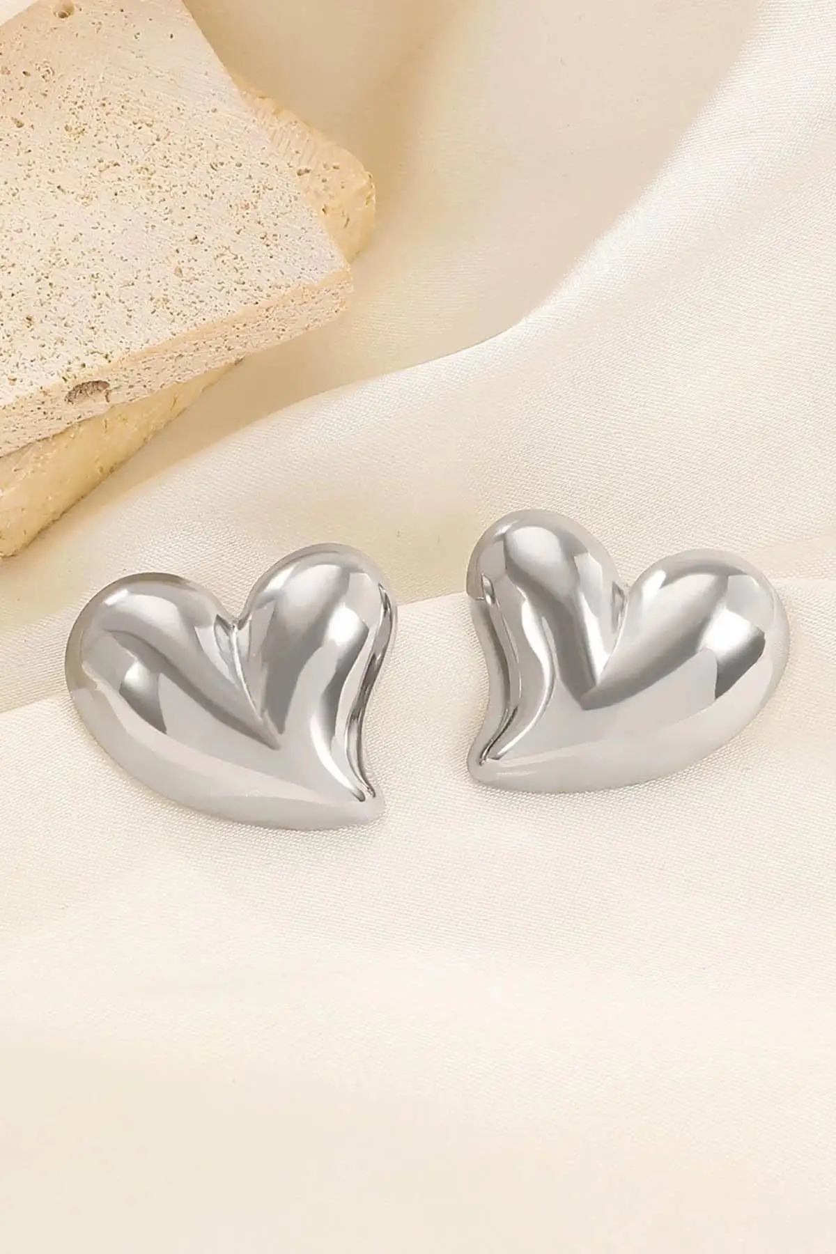 Gümüş Renk Kalp Figürlü Çelik Küpe (Çift)