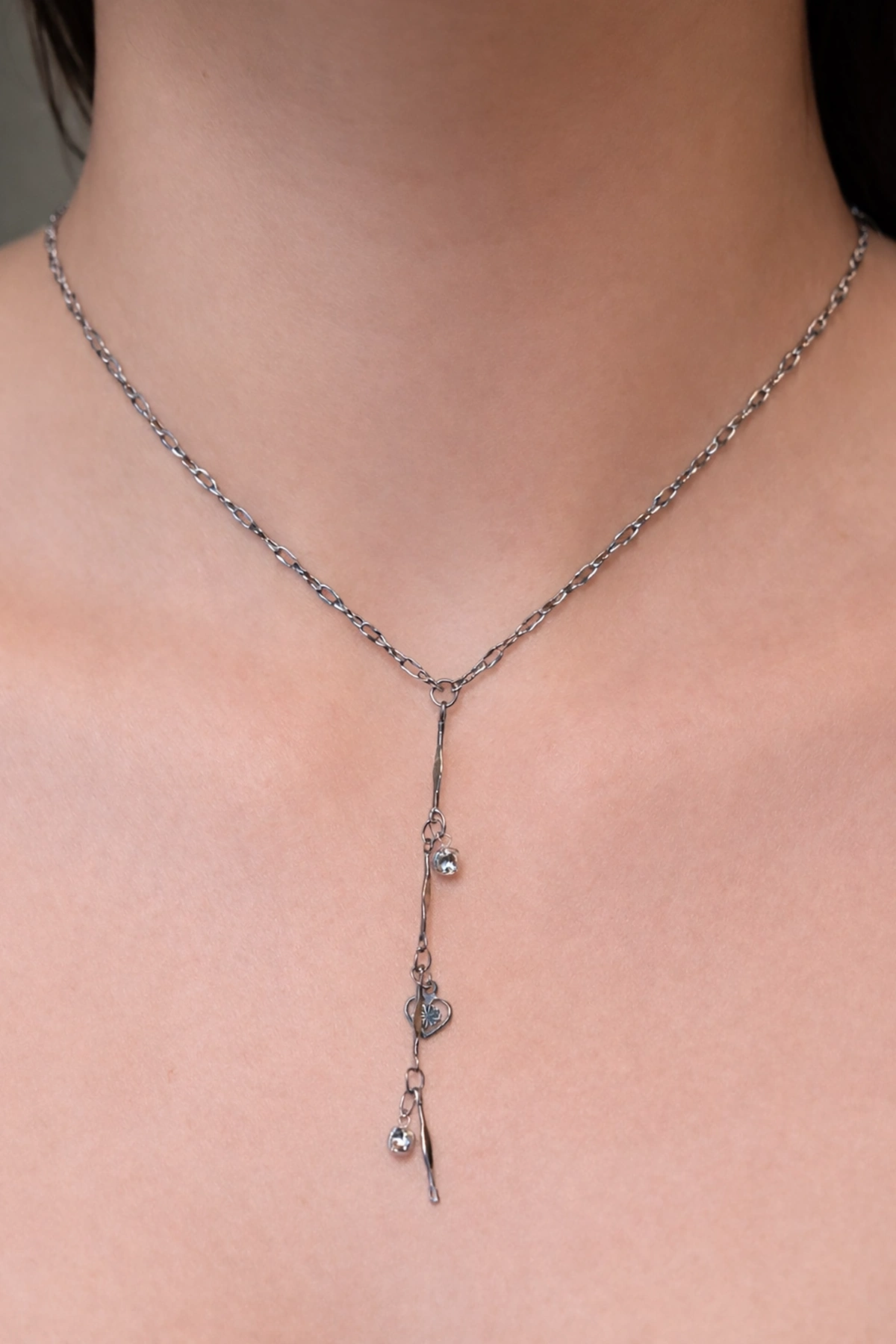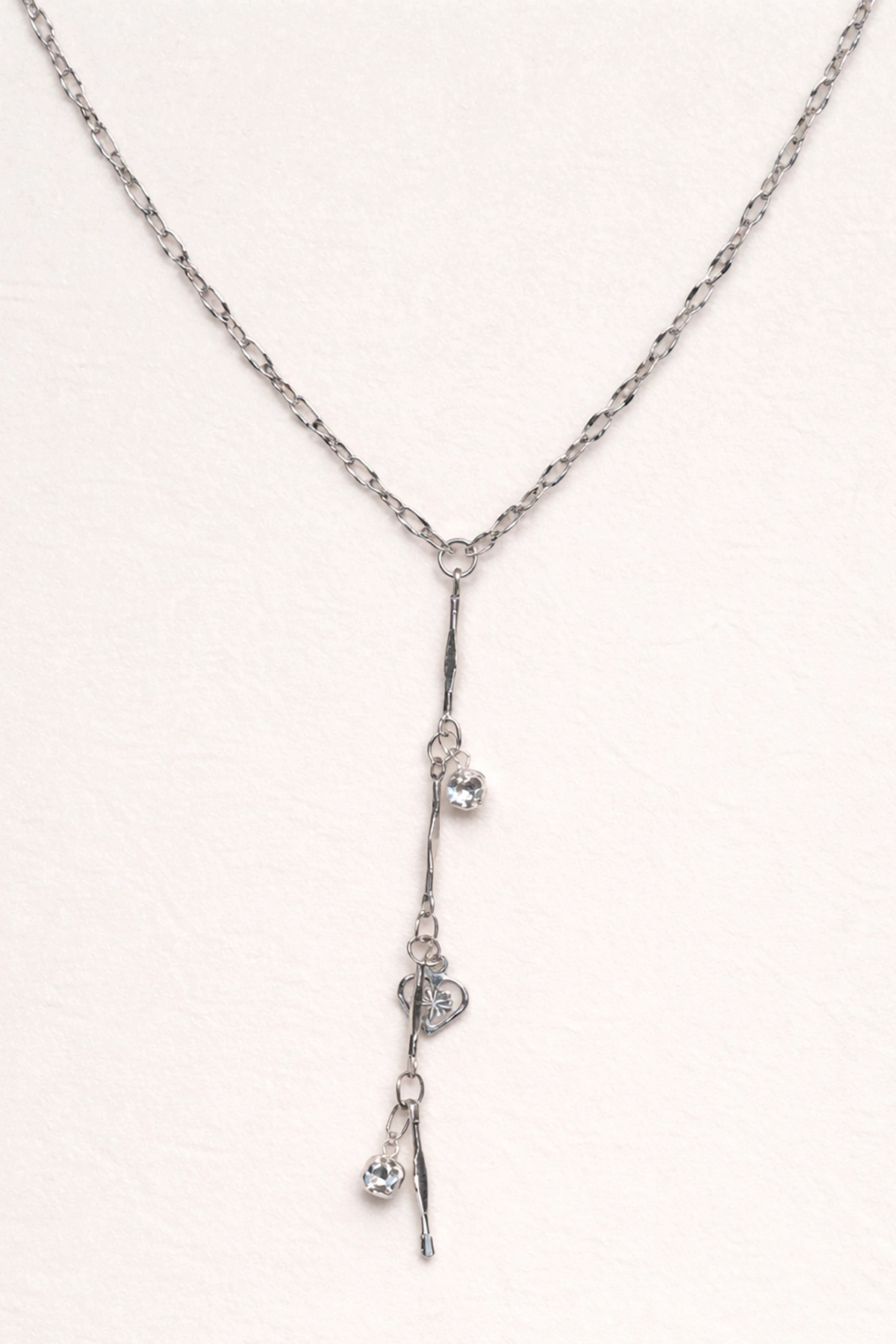 Gümüş Renk Kalp Figürlü Çelik Y Kolye