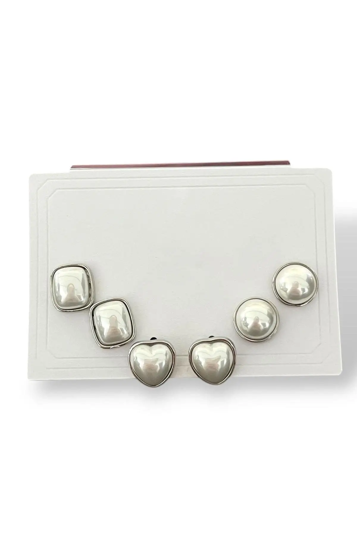 Gümüş Renk Kalp Figürlü İnci Detaylı 6'lı Küpe Set