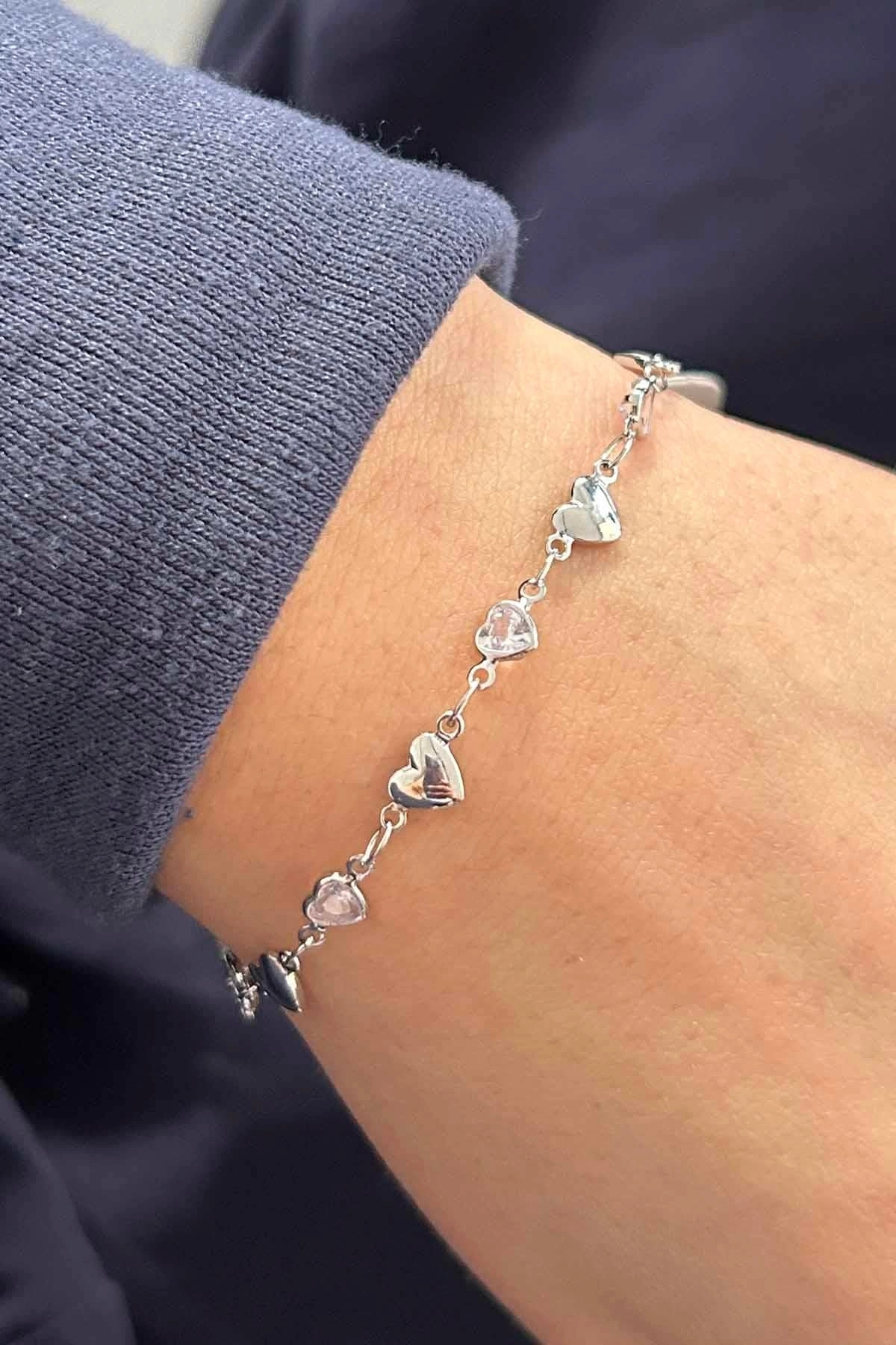 Gümüş Renk Kalp Figürlü Taş Detaylı Bileklik