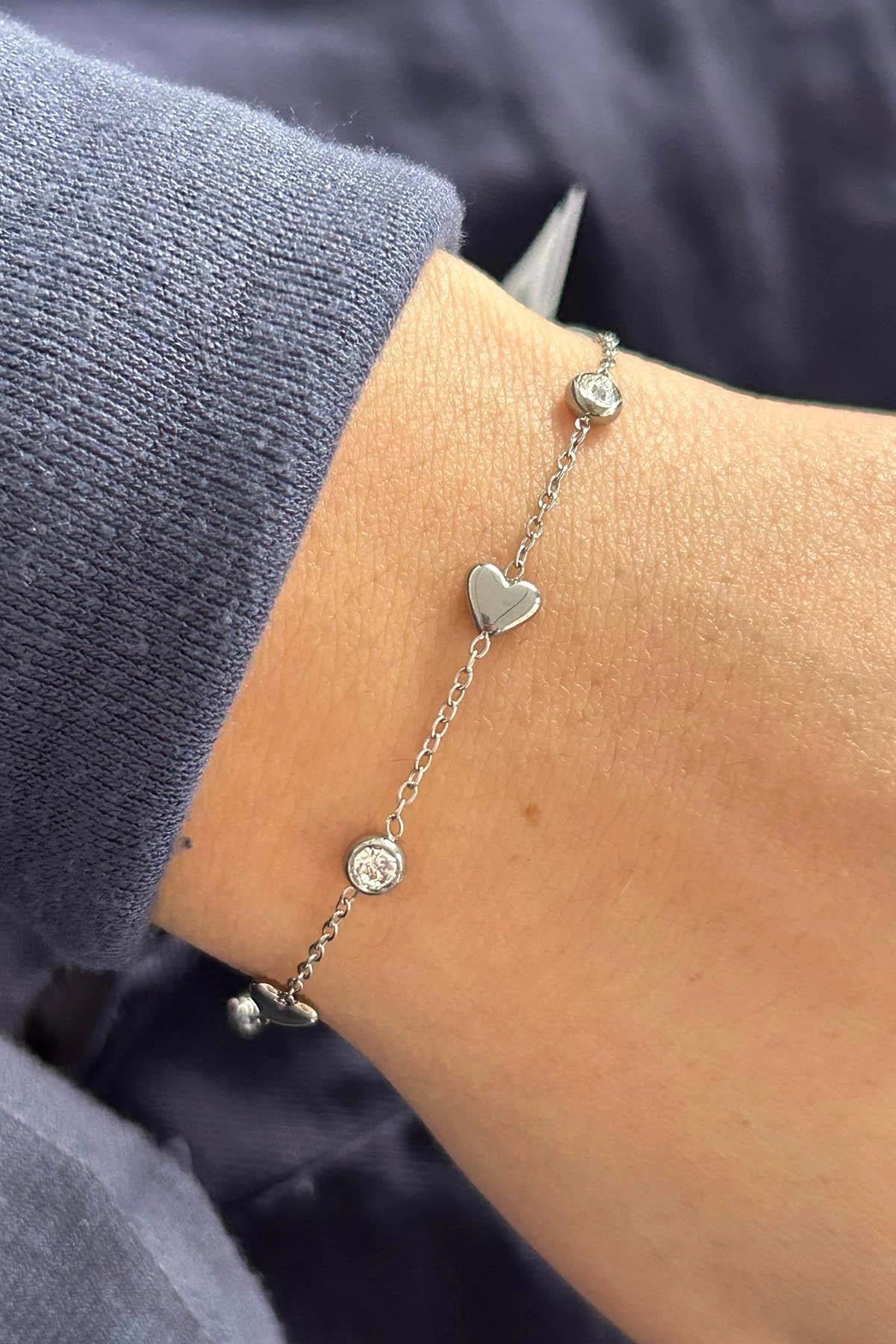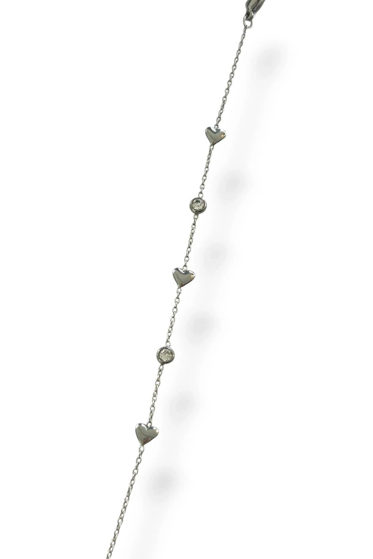 Gümüş Renk Kalp Figürlü Taş Detaylı Çelik Bileklik