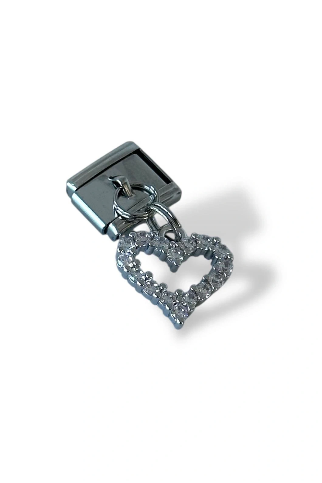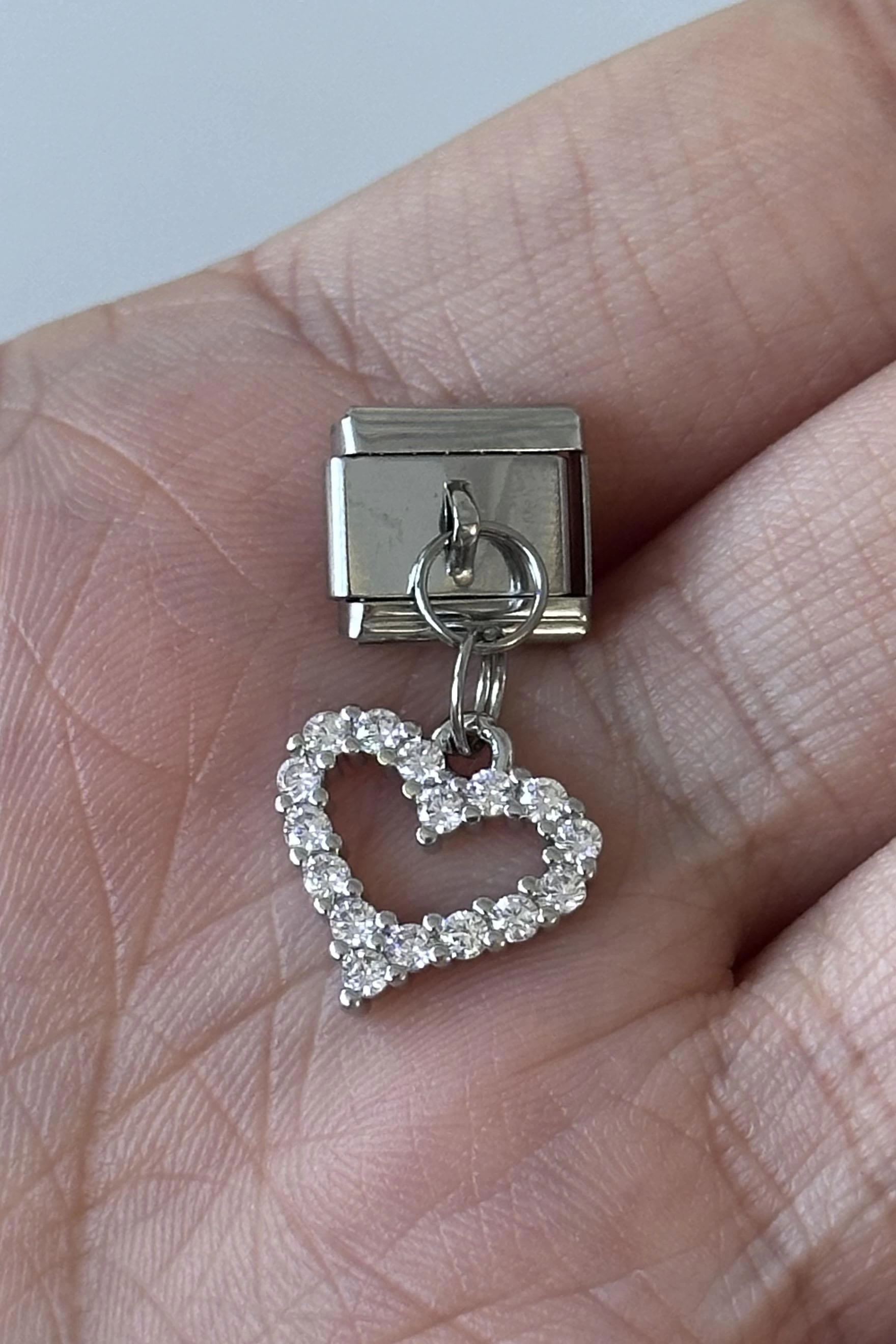 Gümüş Renk Kalp Figürlü Taş Detaylı Çelik Nomination Charm (Tek)