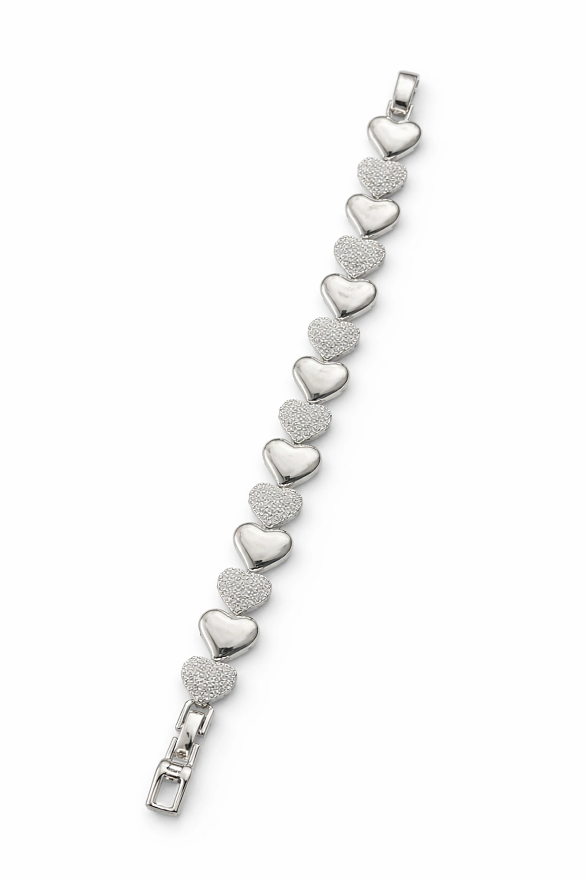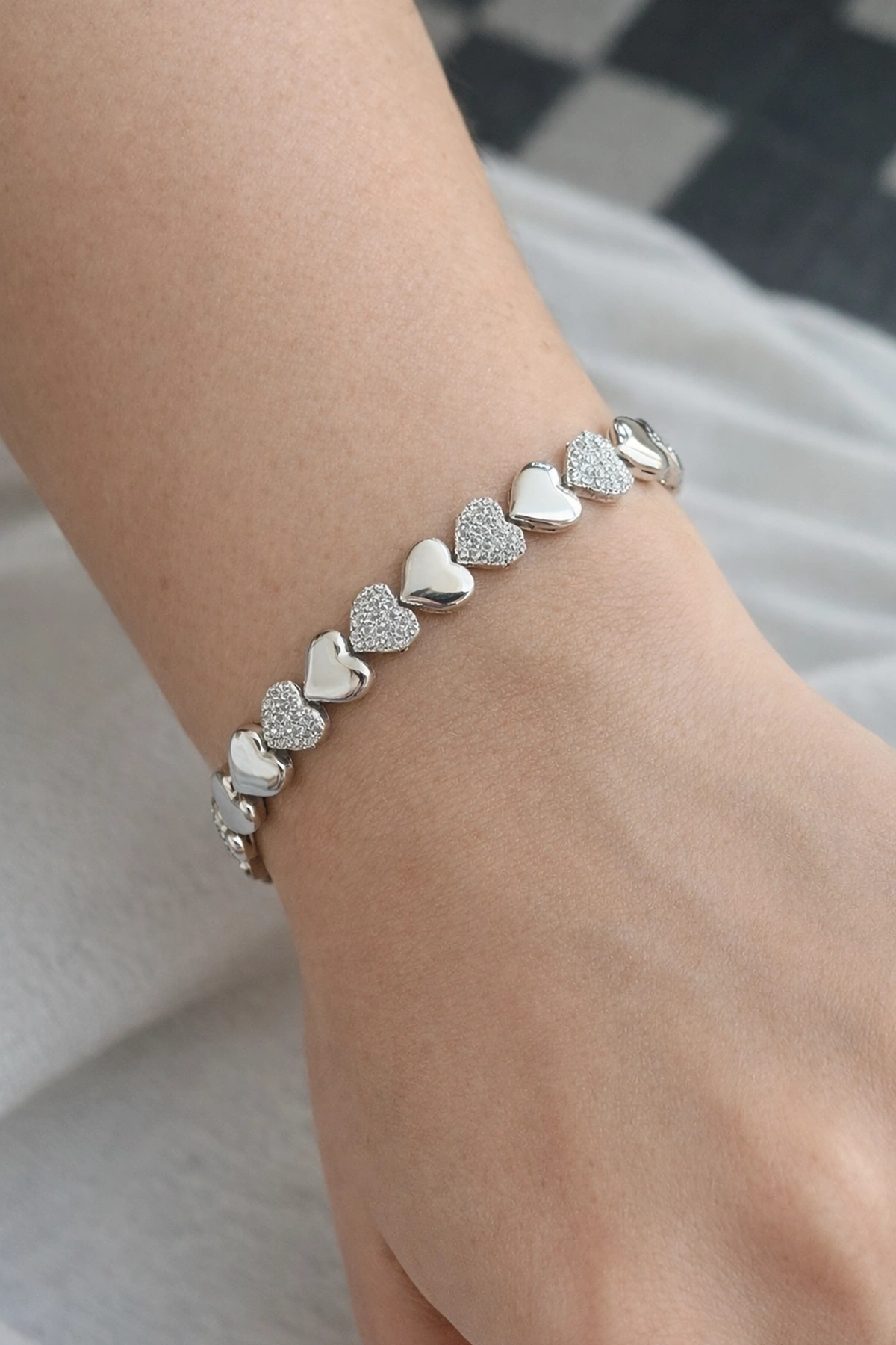 Gümüş Renk Kalp Figürlü Taş Detaylı Çelik Xuping VIP Bileklik