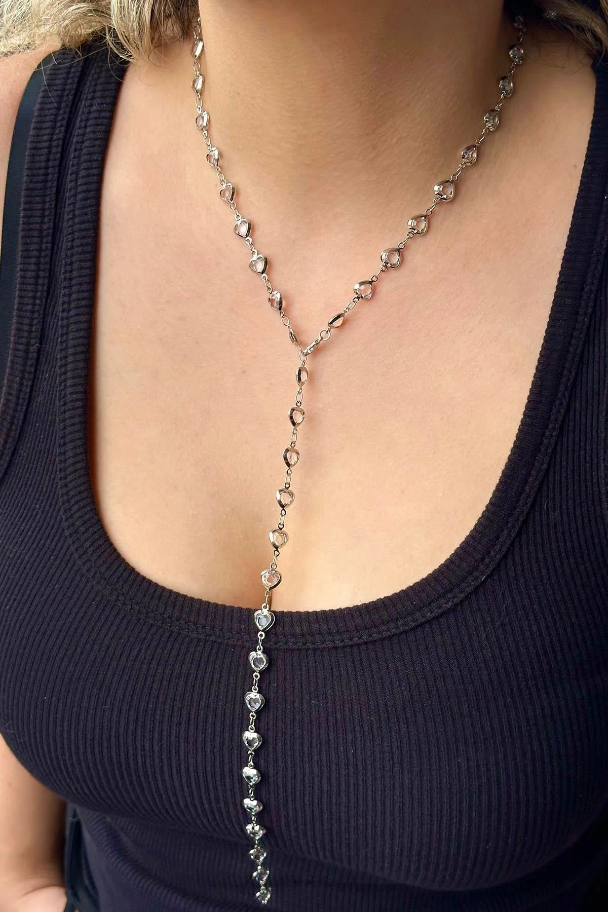 Gümüş Renk Kalp Figürlü Taş Detaylı Çelik Y Kolye