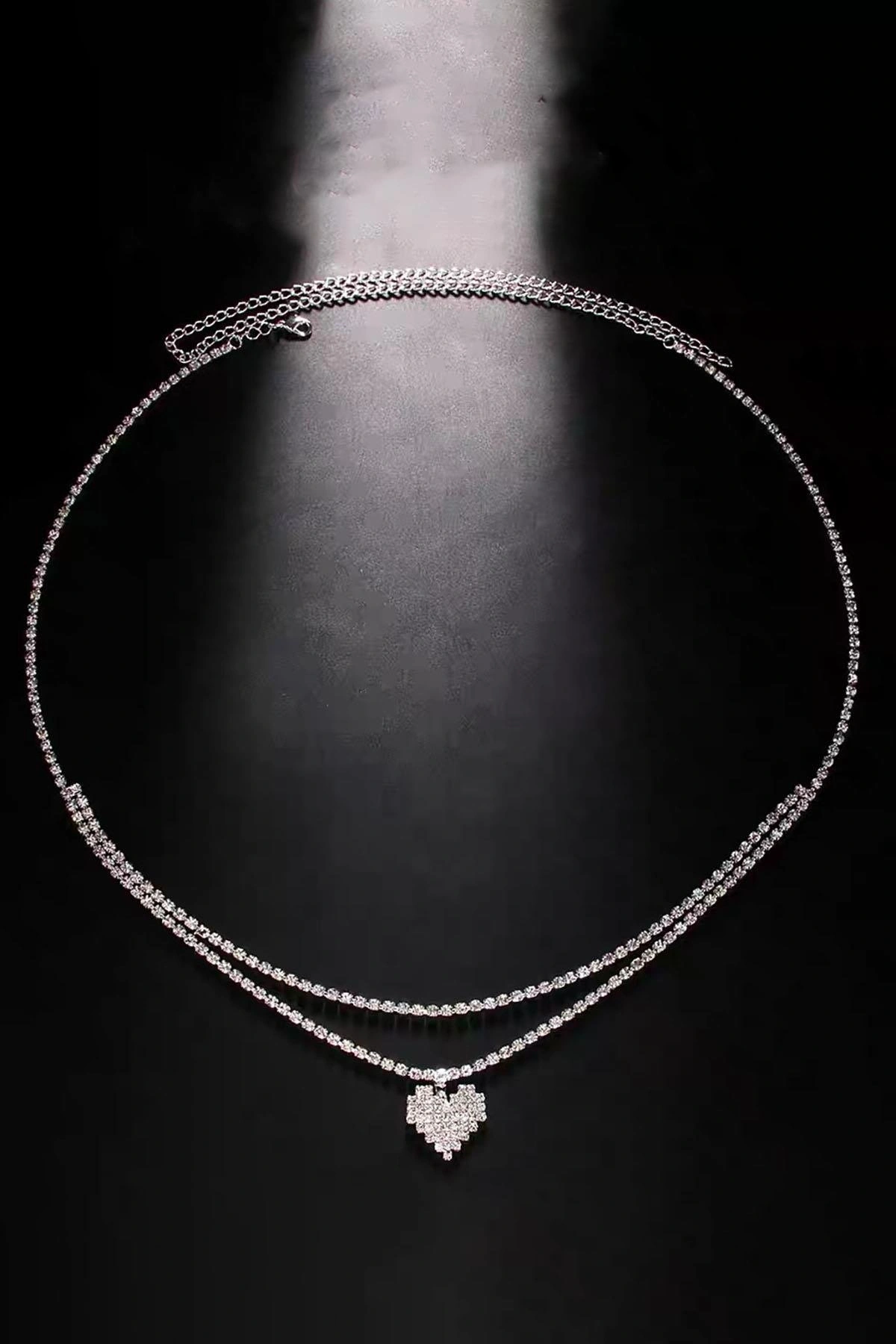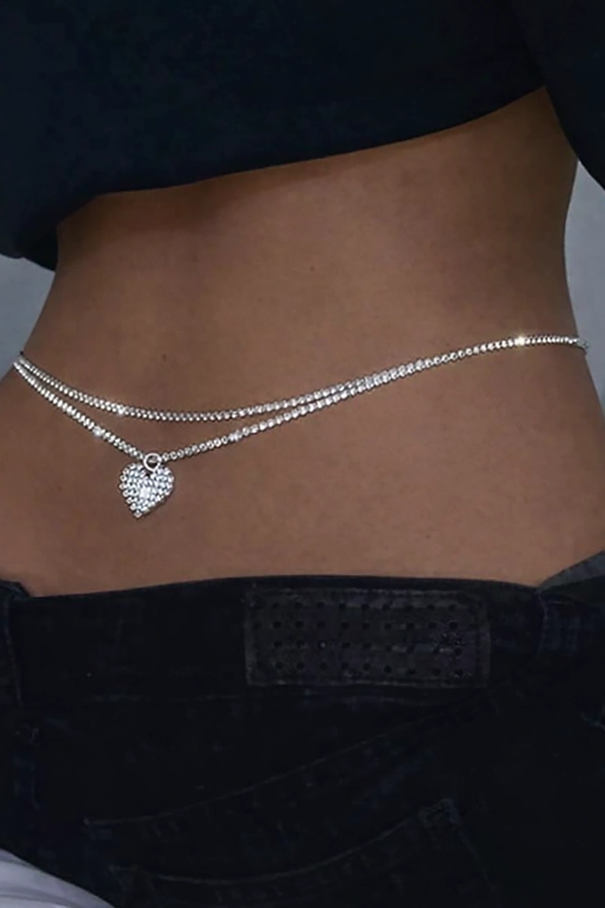 Gümüş Renk Kalp Figürlü Taş Detaylı Tasarım Bel Zinciri/Vücut Aksesuar