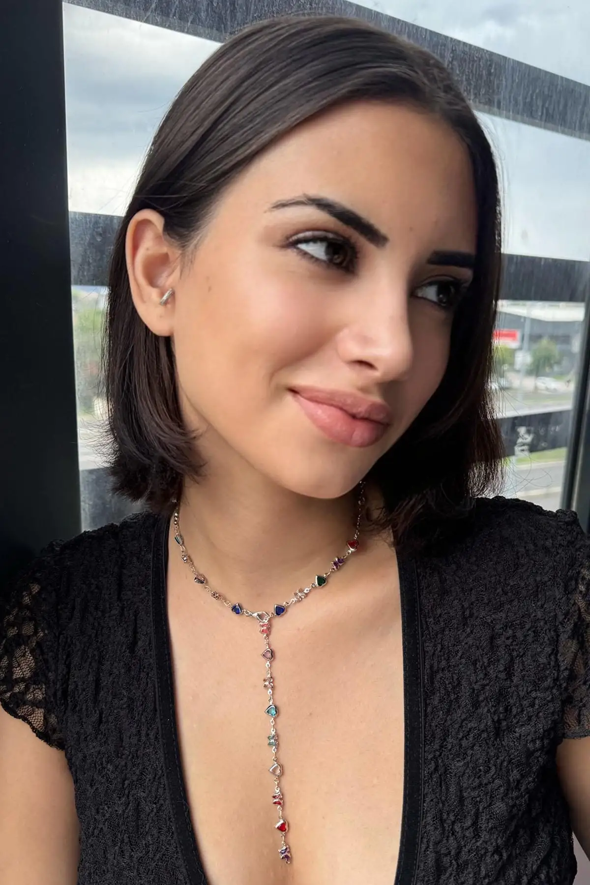 Gümüş Renk Taş Detaylı Çelik Y Kolye