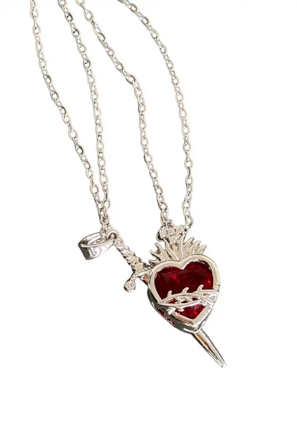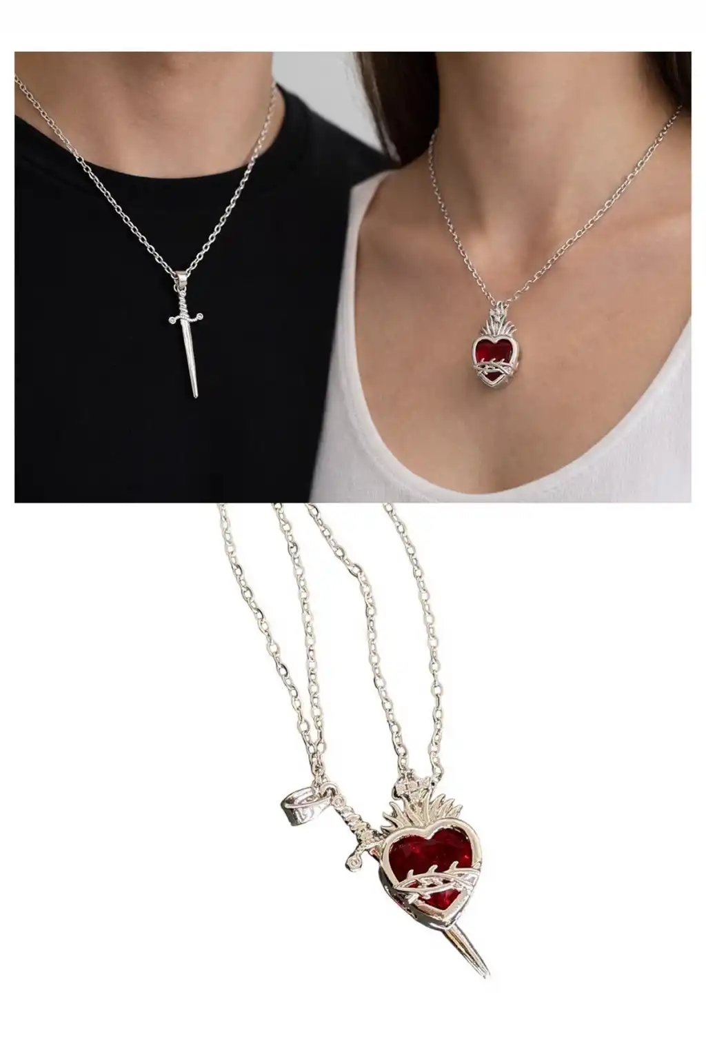 Gümüş Renk Kalp Ve Kılıç Figürlü İkili Çelik Sevgili Kolyesi