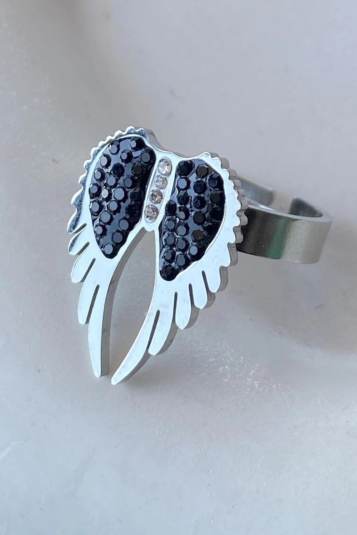 Gümüş Renk Kanat Figürlü Ayarlanabilir Çelik Yüzük