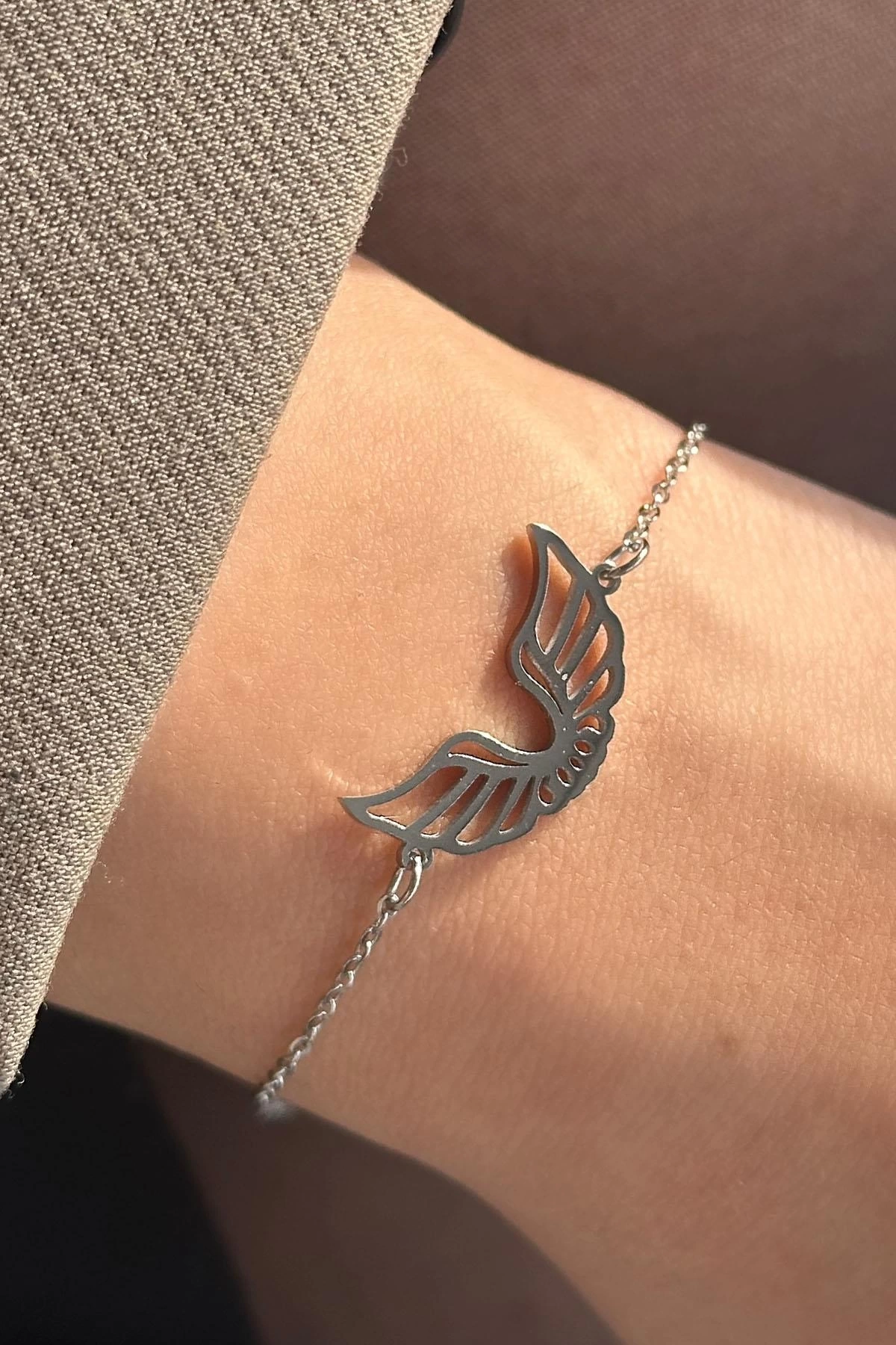 Gümüş Renk Kanat Figürlü Çelik Bileklik