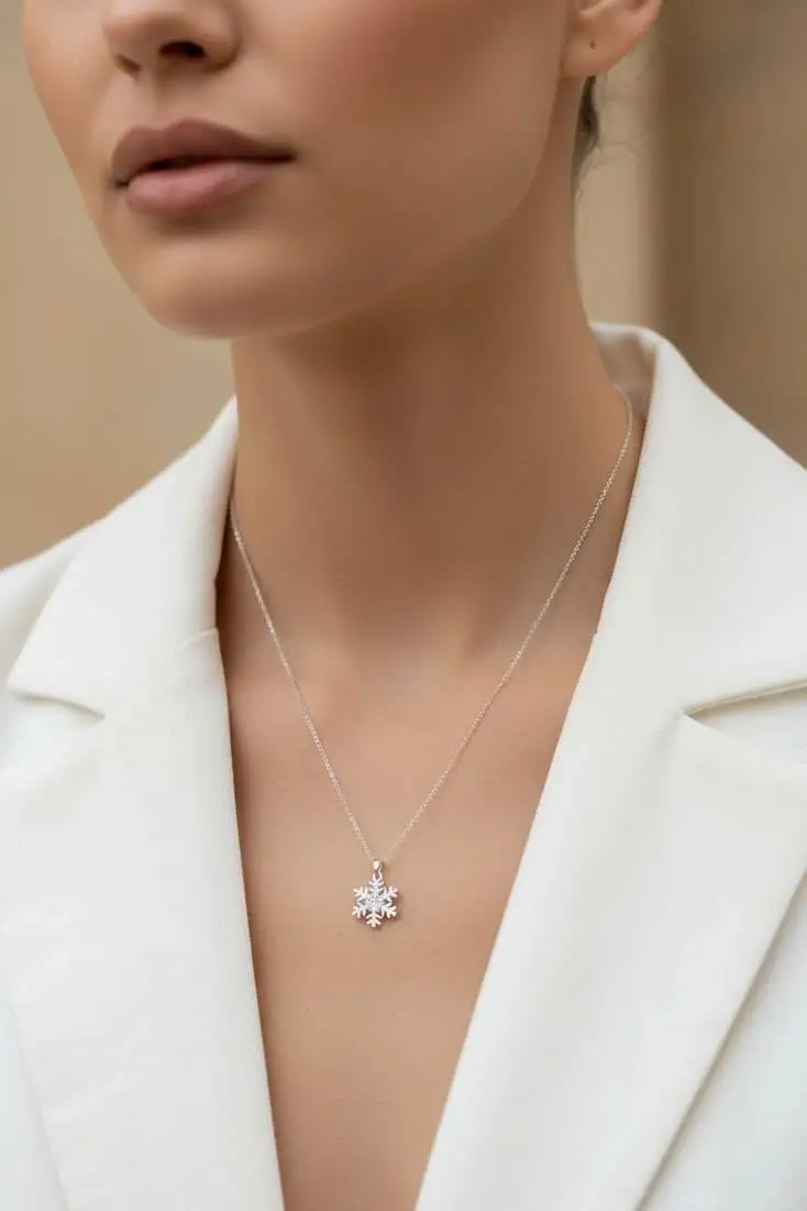 Gümüş Renk Kar Tanesi Figürlü Çelik Kolye