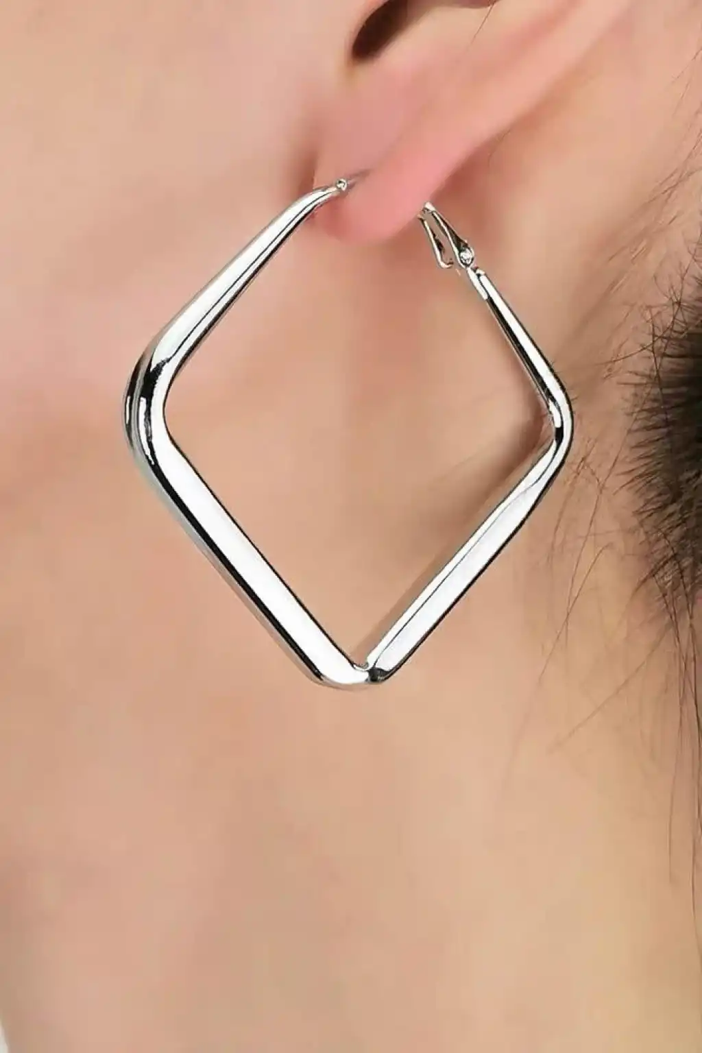 Gümüş Renk Kare Küpe (Çift)