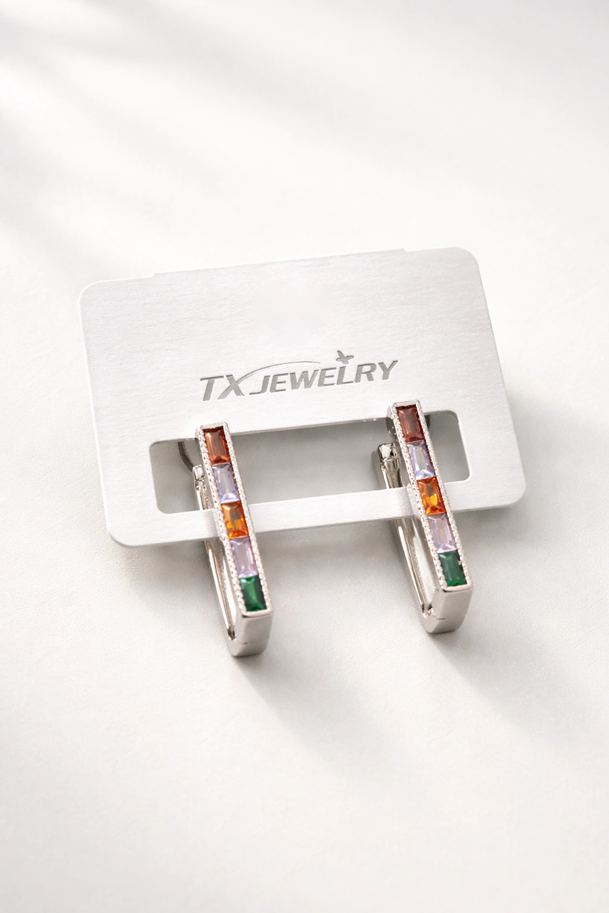 Gümüş Renk Kare Taşlı 14K Altın Kaplama Tx Küpe (Çift)