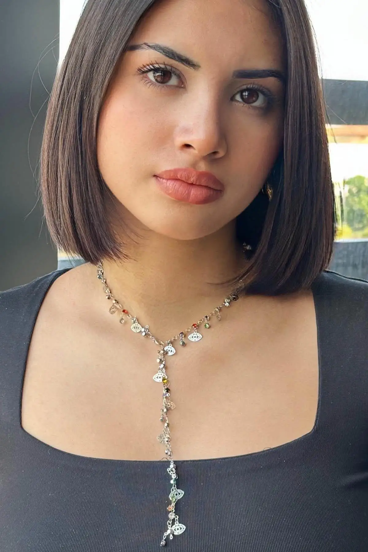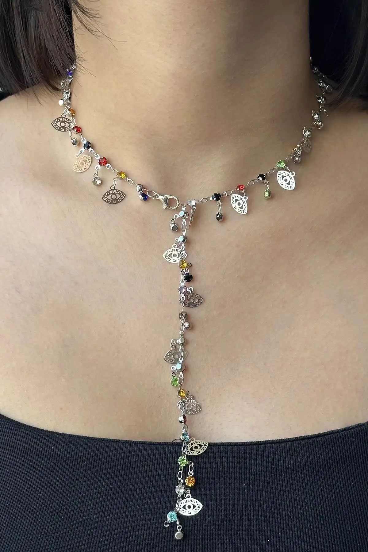 Gümüş Renk Göz Figürlü Çelik Y Kolye