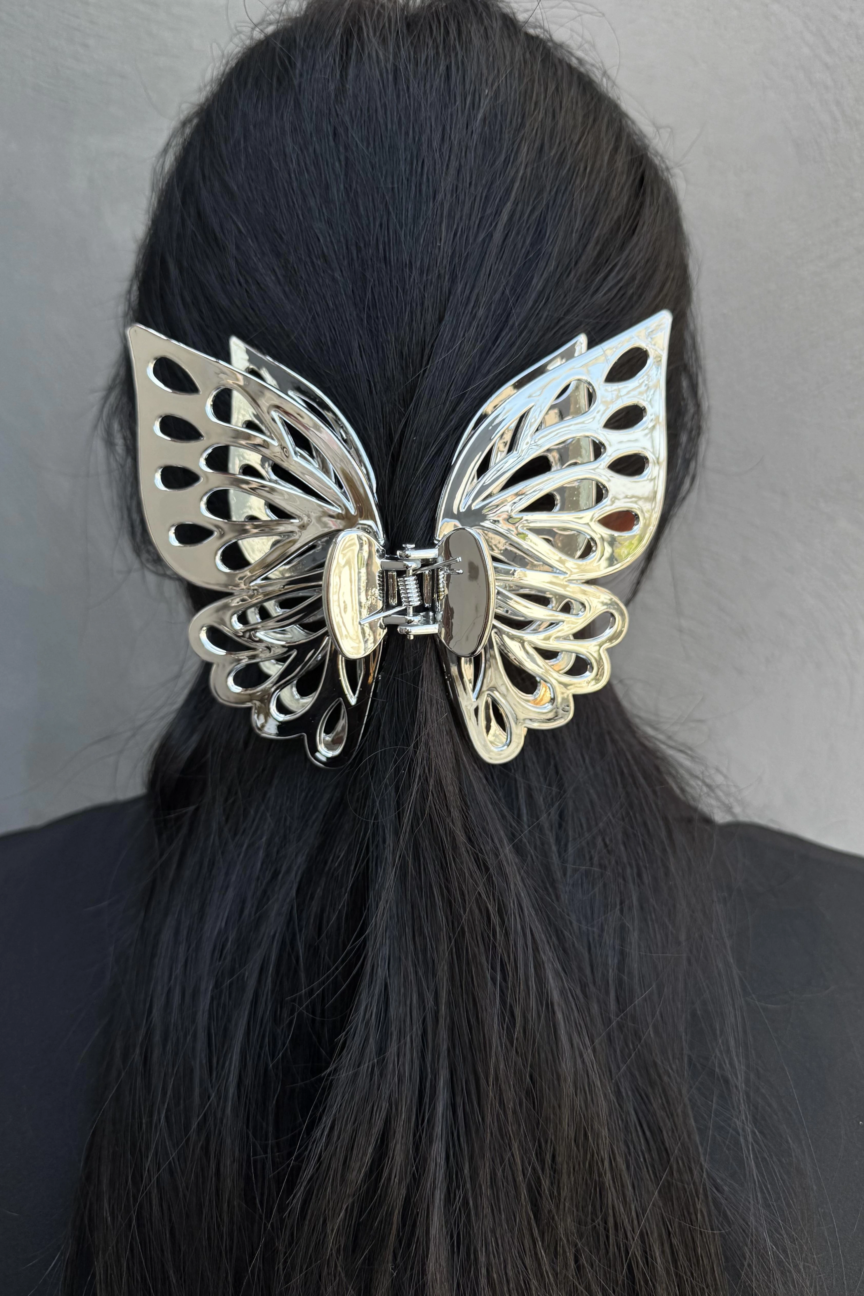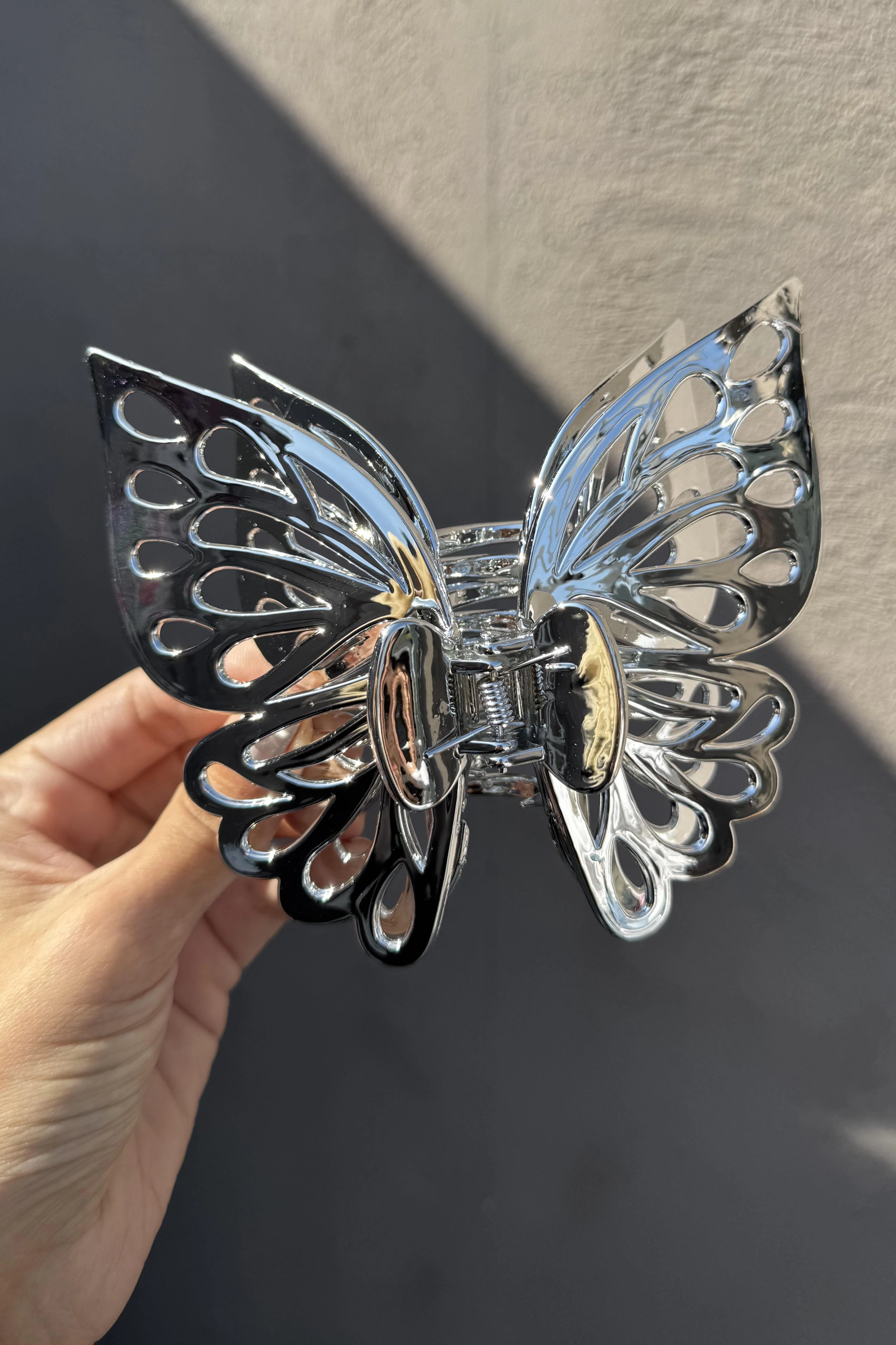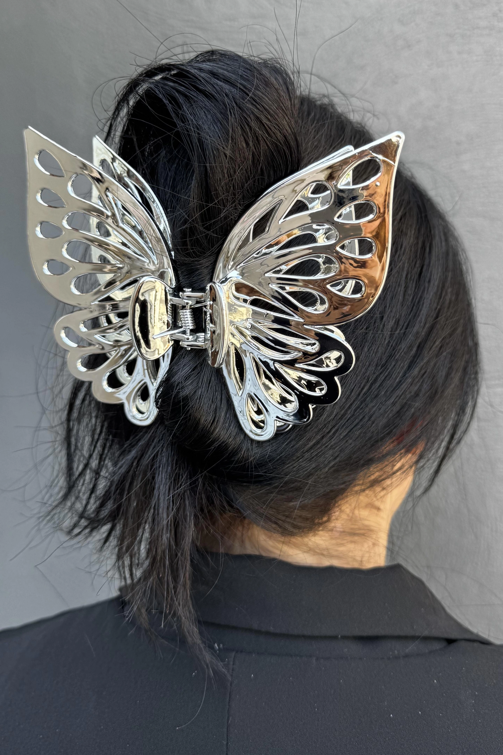 - Genç ve dinamik tarzınızı yansıtan gümüş renkli kelebek detaylı toka, günlük kullanımda şıklığınızı tamamlar.