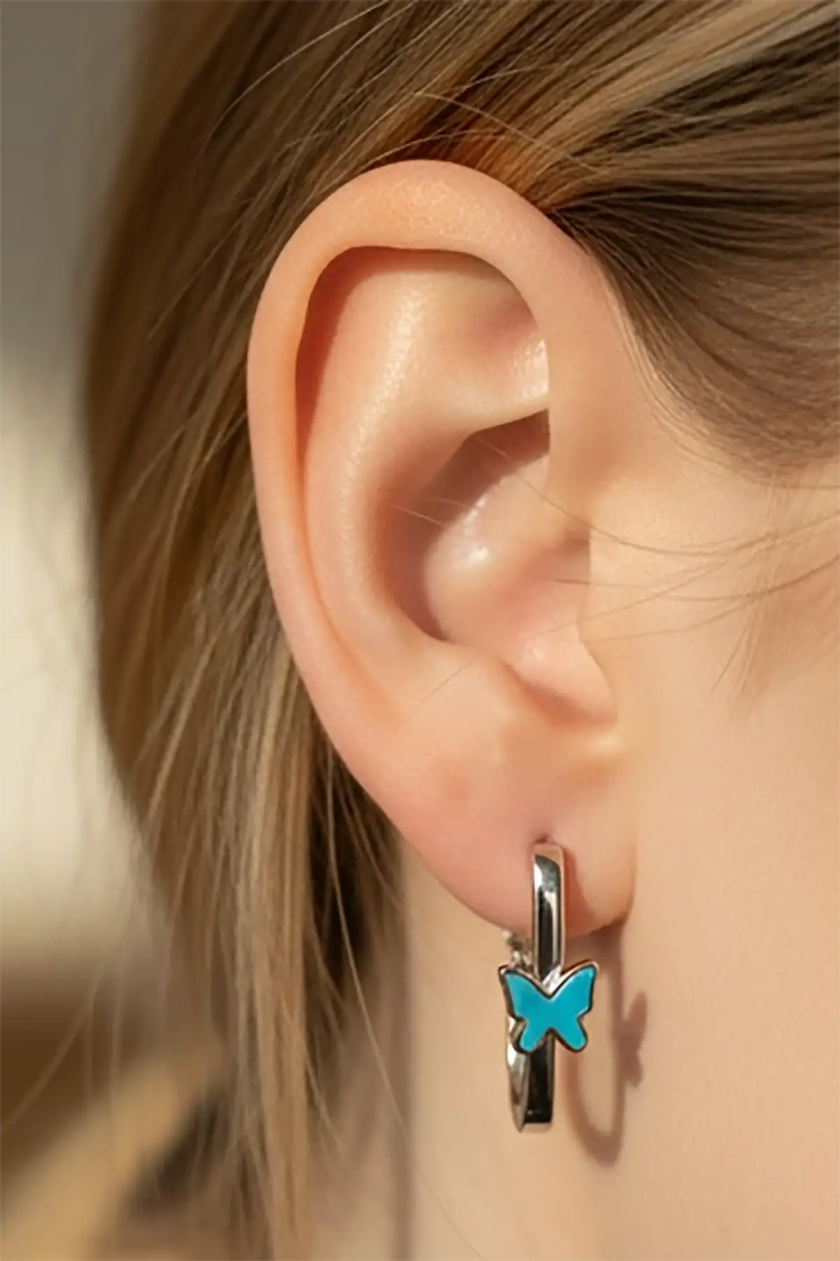 Gümüş Renk Kelebek Figürlü Çelik Küpe (Çift)