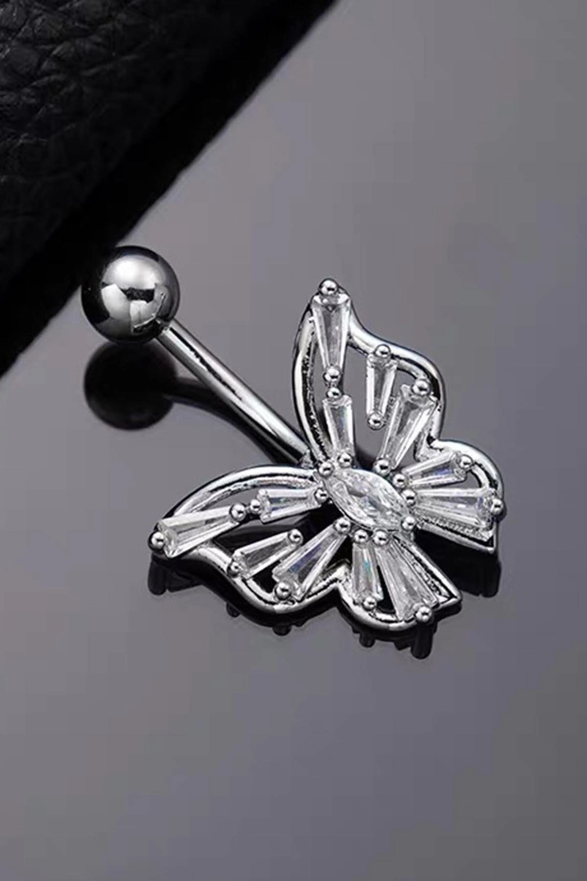 Gümüş Renk Kelebek Figürlü Cerrahi Çelik Göbek Piercing