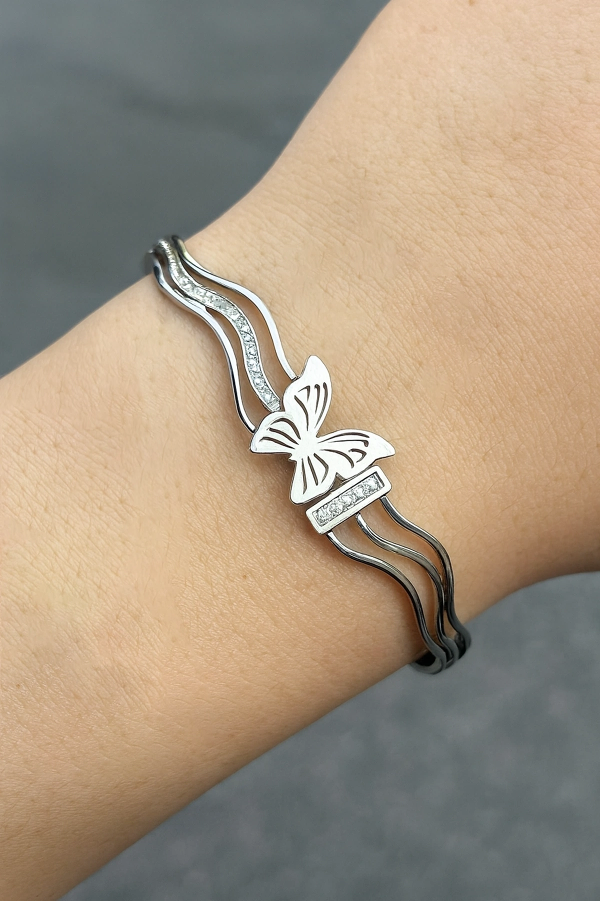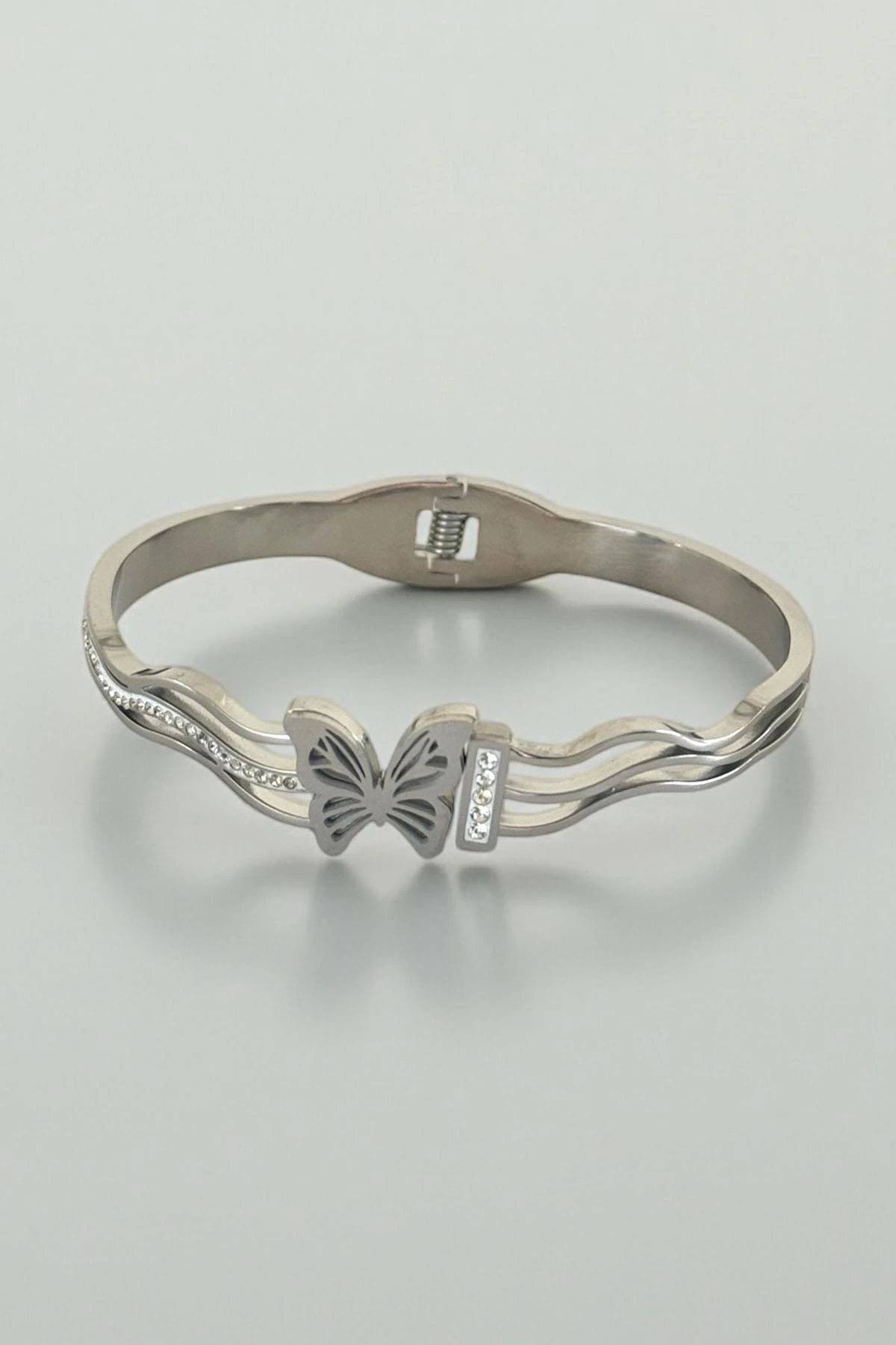 Gümüş Renk Kelebek Figürlü Kelepçe Bileklik