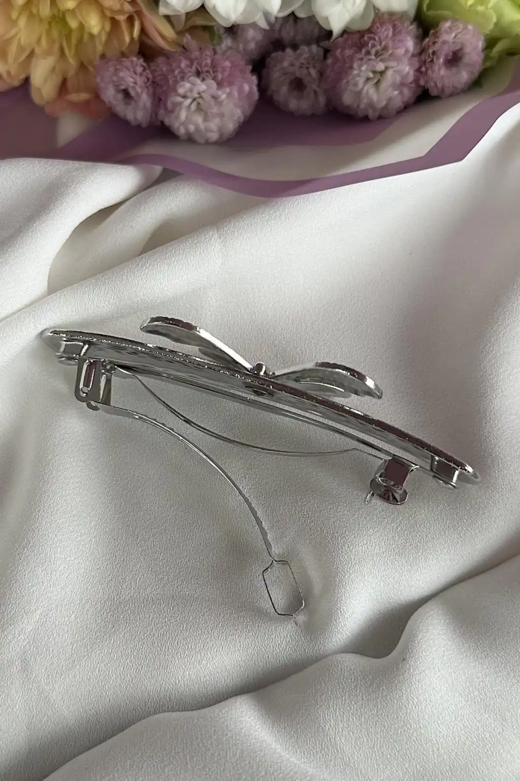 Gümüş Renk Kelebek Figürlü Metal Otomat Toka