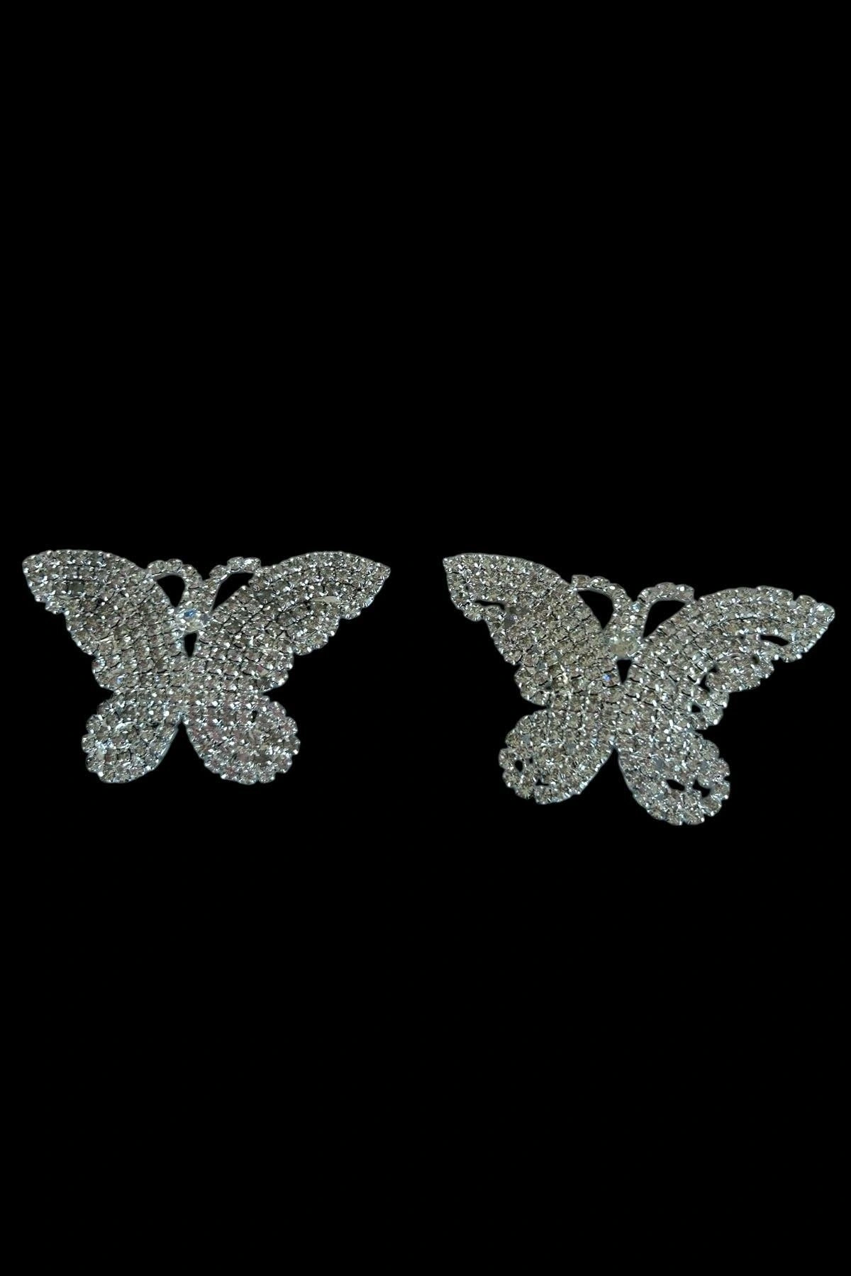 Gümüş Renk Kelebek Figürlü Taş Detaylı Tasarım Göğüs Ucu Aksesuar