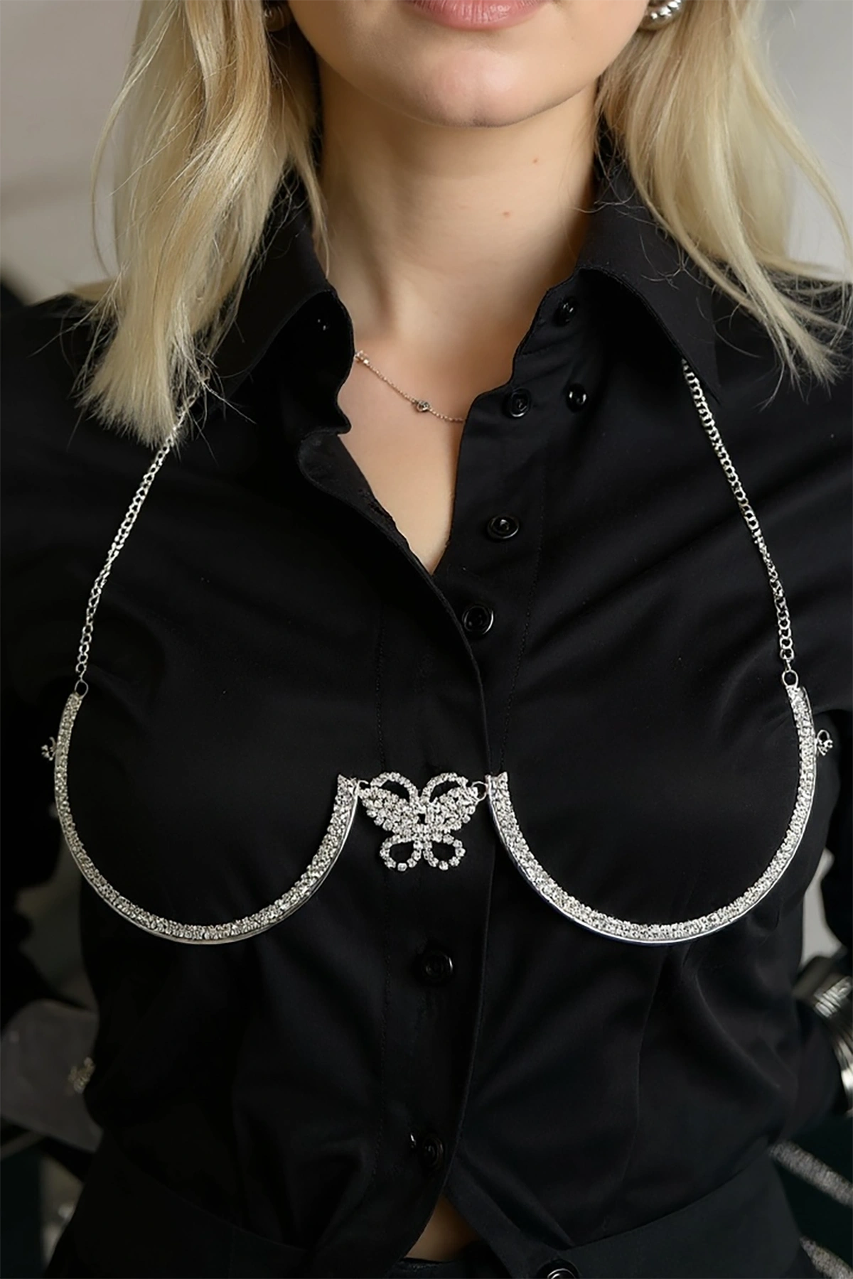 Gümüş Renk Kelebek Figürlü Taş Detaylı Tasarım Vücut Aksesuar