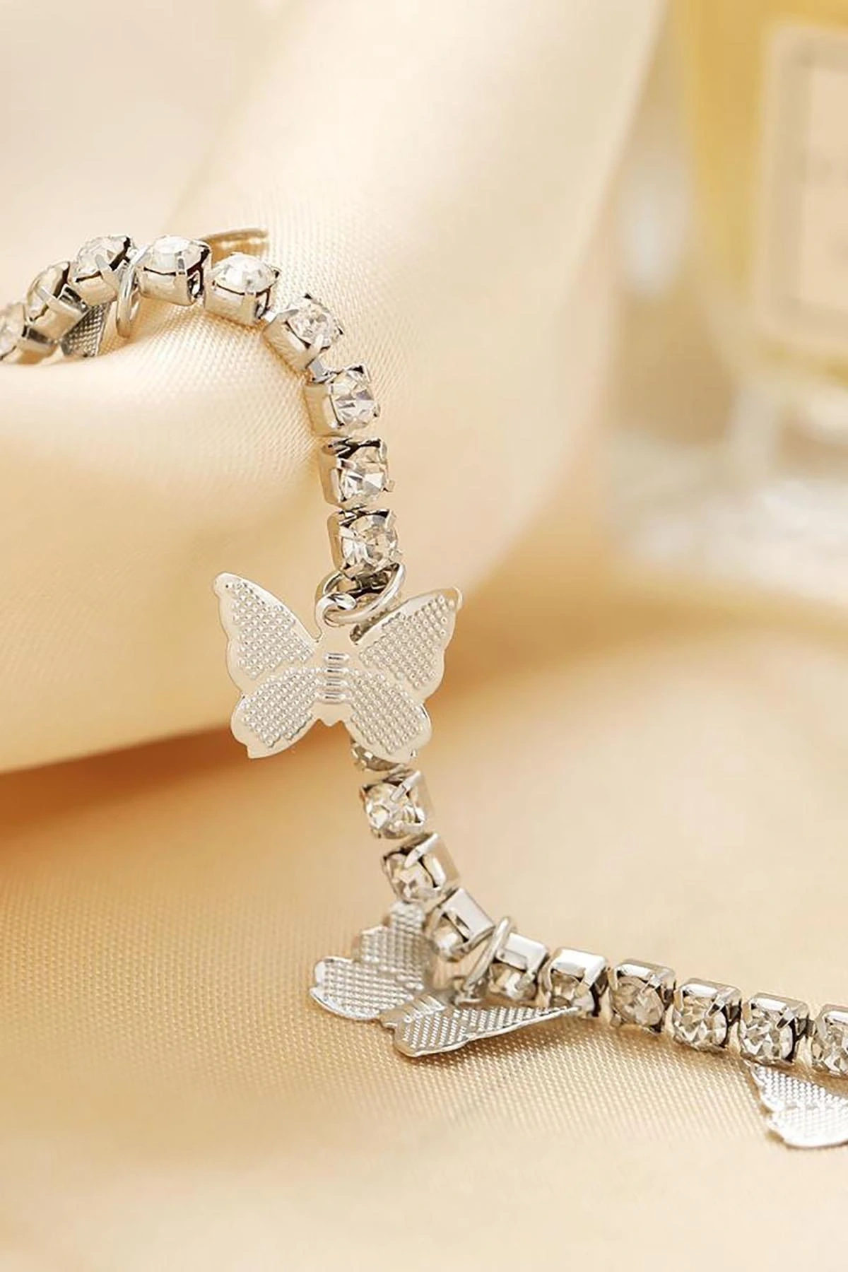 Gümüş Renk Kelebek Figürlü Taşlı Su Yolu Kolye