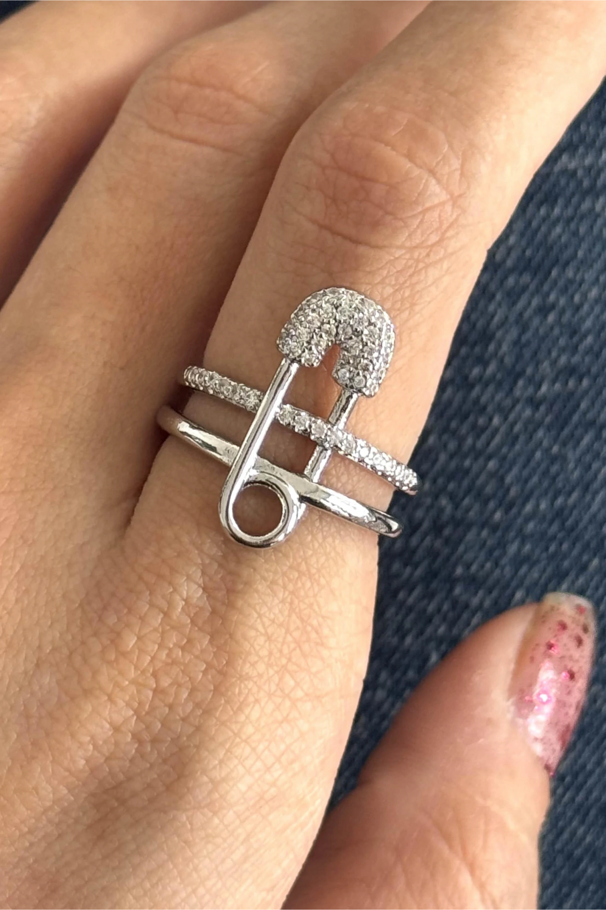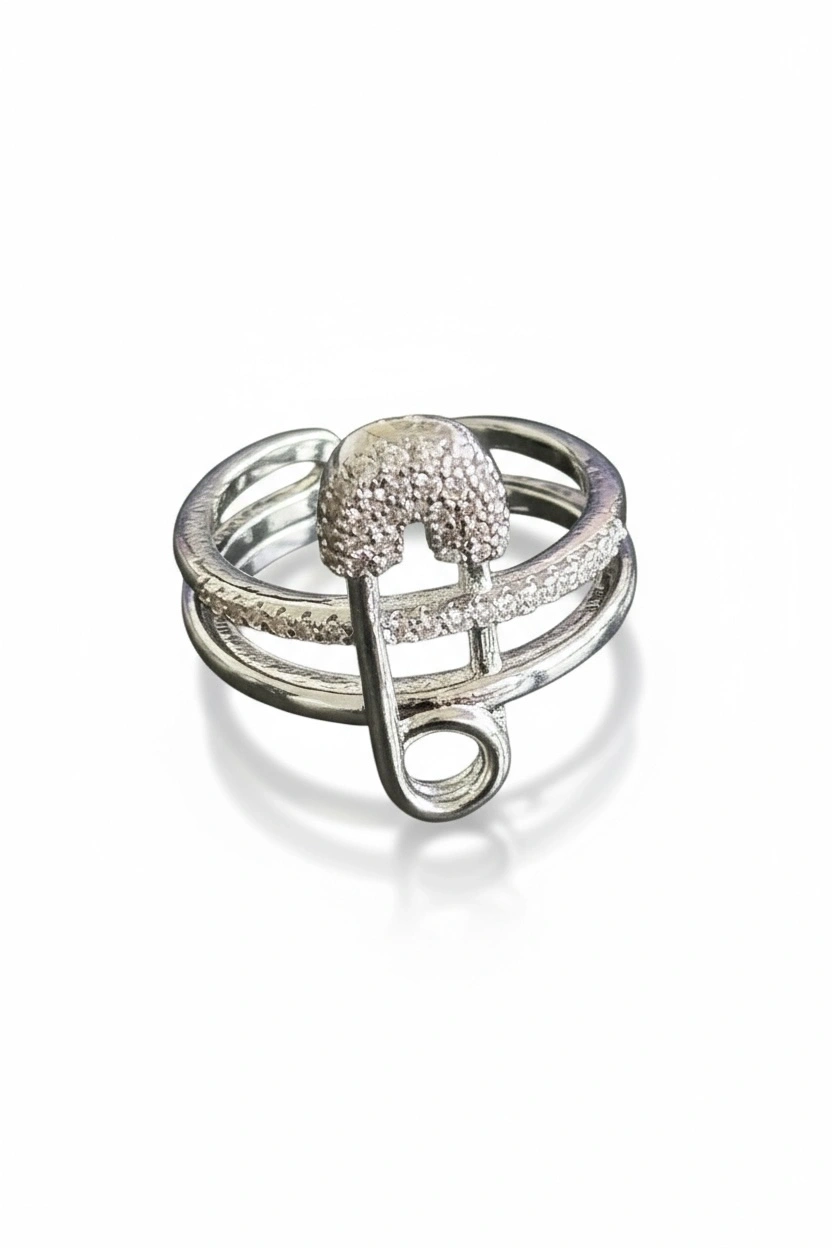 Gümüş Renk Kilitli İğne Figürlü 14K Altın Kaplama Ayarlanabilir Yüzük