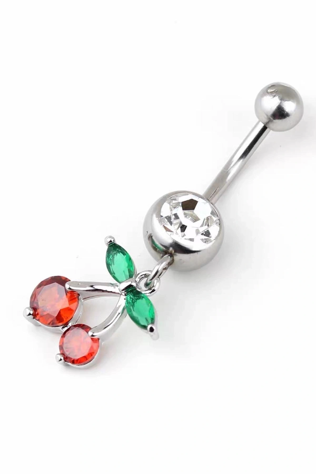 Gümüş Renk Kiraz Figürlü Cerrahi Çelik Göbek Piercing