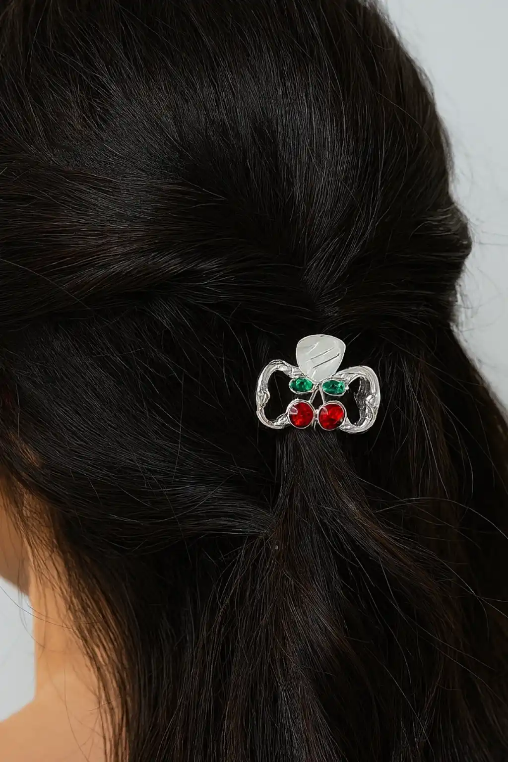Gümüş Renk Kiraz Figürlü Metal Mini Mandal Toka