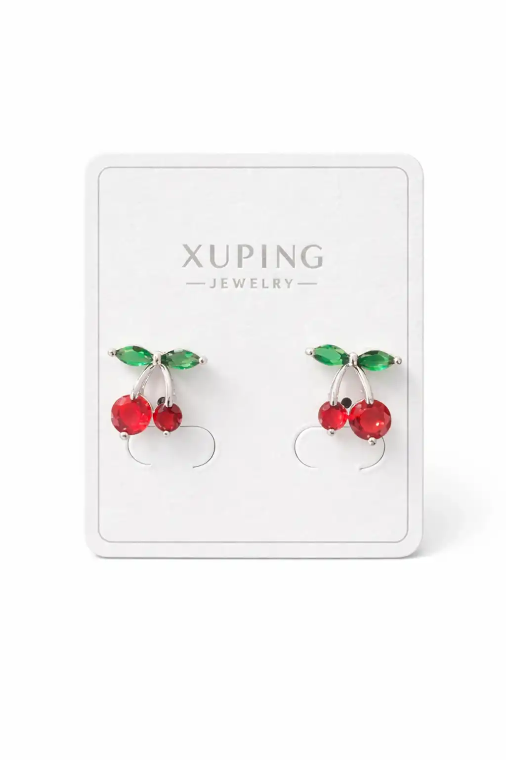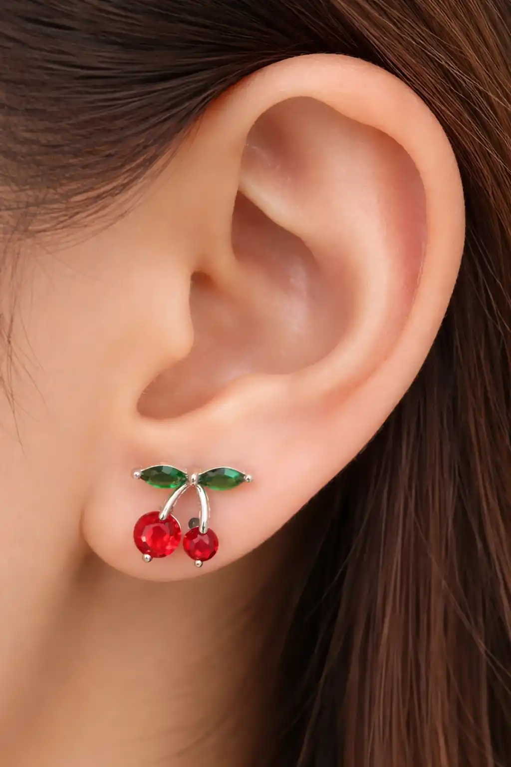 Gümüş Renk Kiraz Figürlü Taş Detaylı Çelik Xupıng VİP Küpe