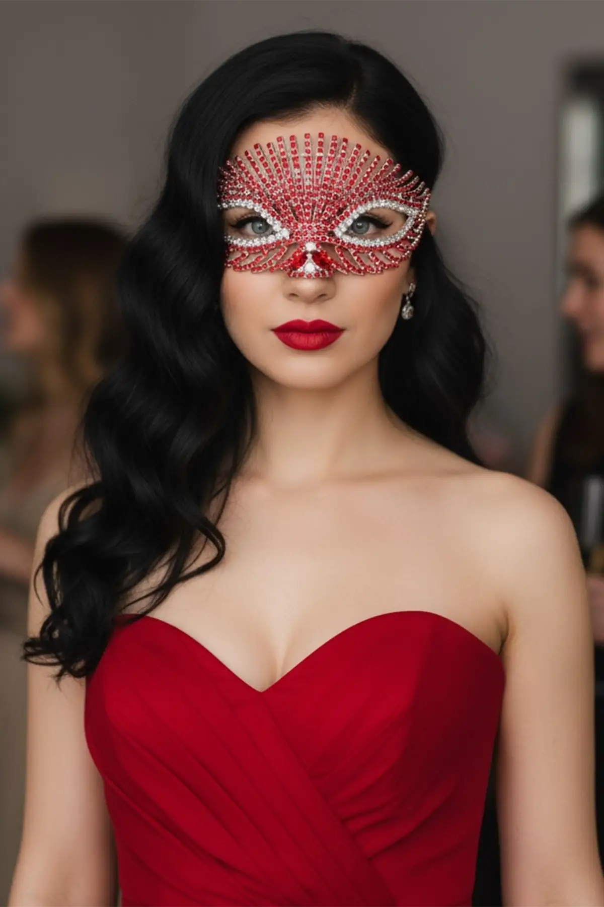 Gümüş Renk Kırmızı Taş Detaylı Tasarım Parti Maskesi