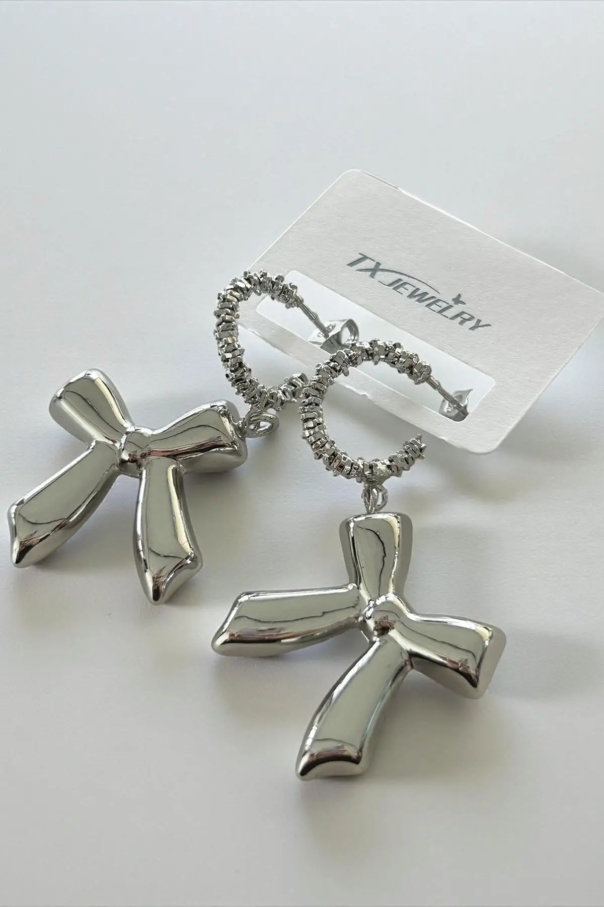 Gümüş Renk Kurdele Figürlü 14K Altın Kaplama TX Küpe (Çift)
