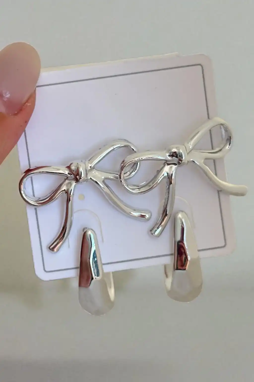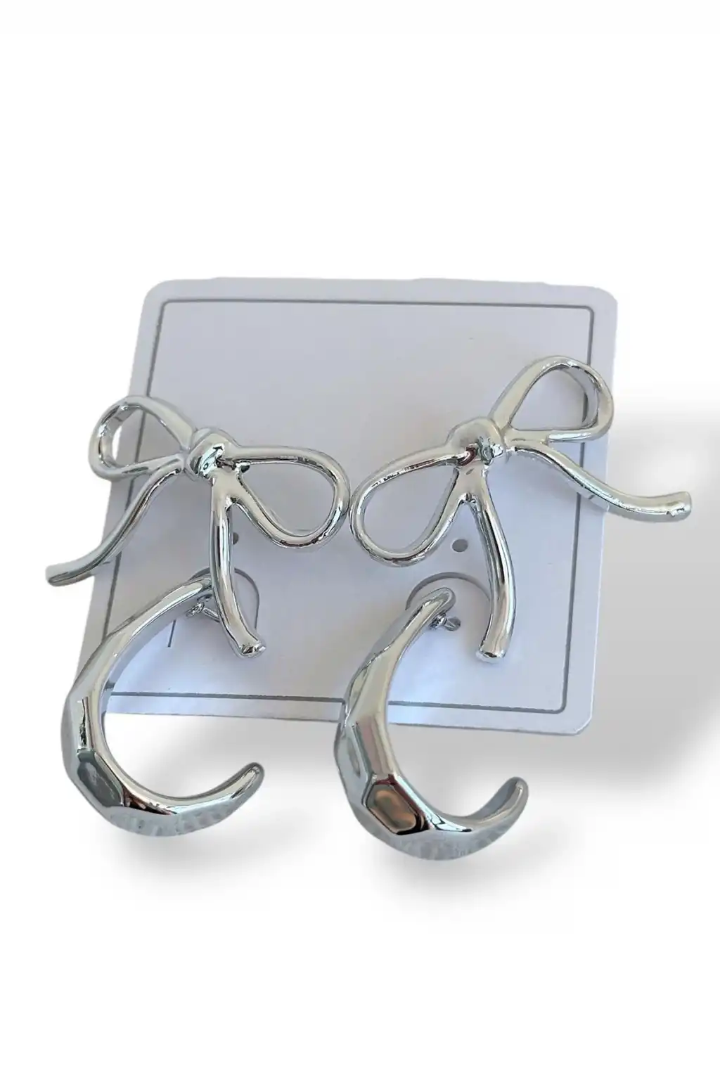 Gümüş Renk Kurdele Figürlü 4'lü Küpe Set
