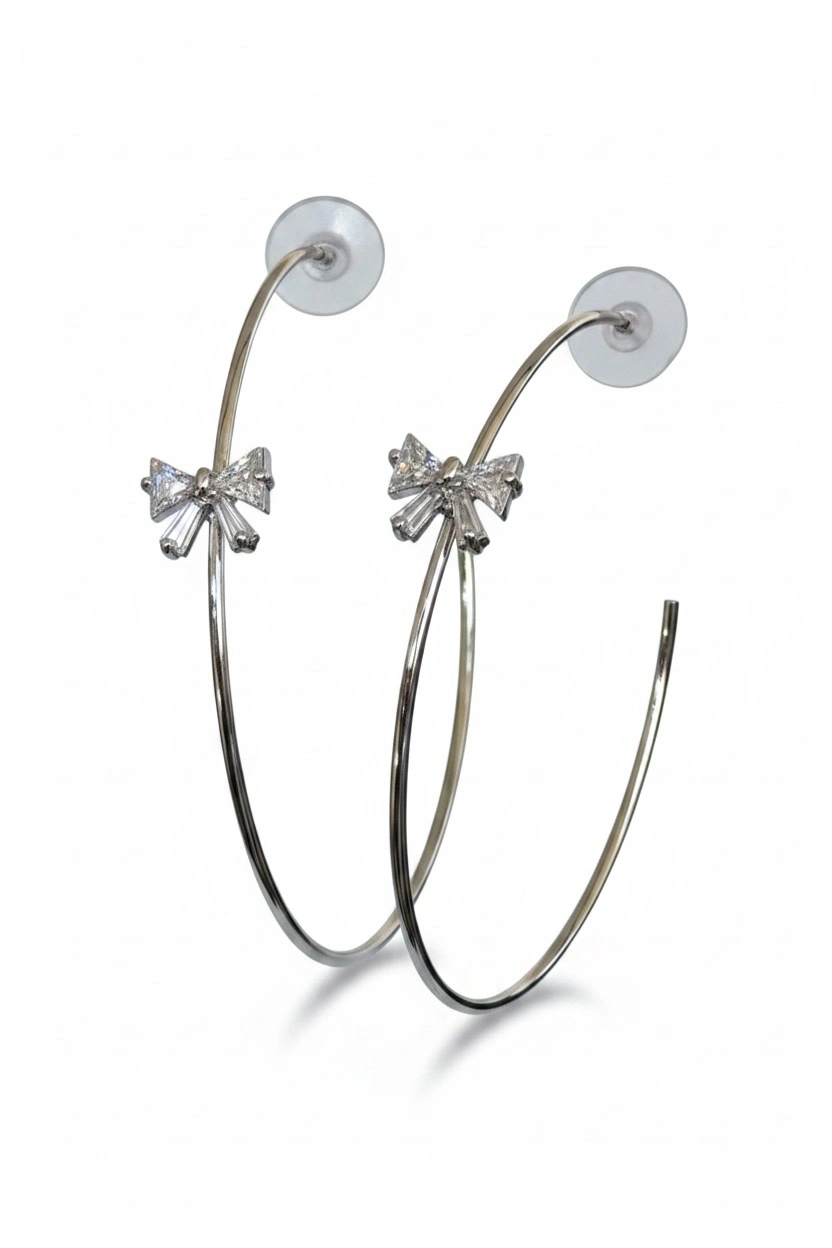 Gümüş Renk Kurdele Figürlü Halka Küpe (Çift)