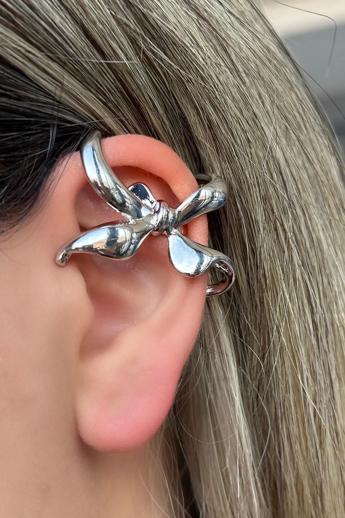 Gümüş Renk Kurdele Figürlü Kulak Aksesuar (Tek)