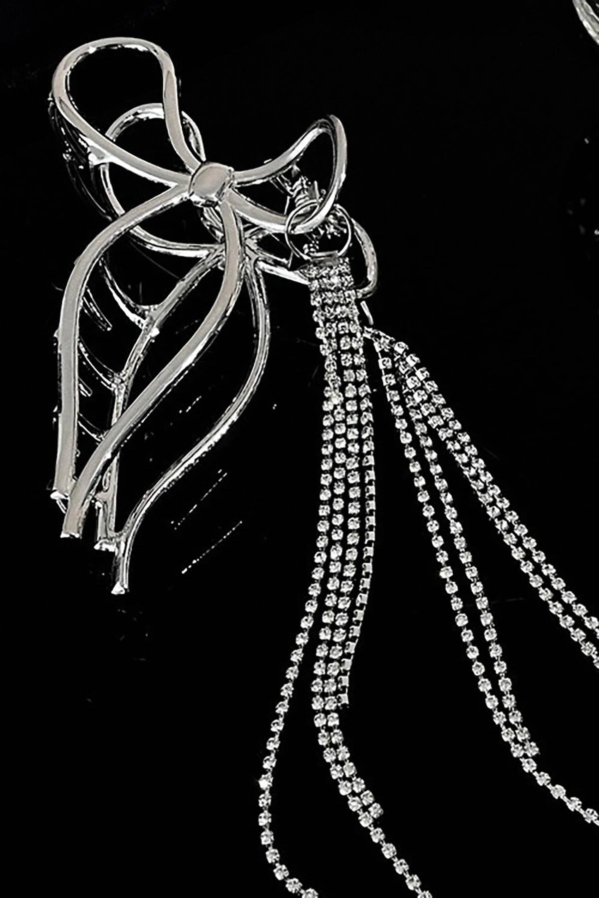 Gümüş Renk Kurdele Figürlü Taş Detaylı Metal Mandal Toka