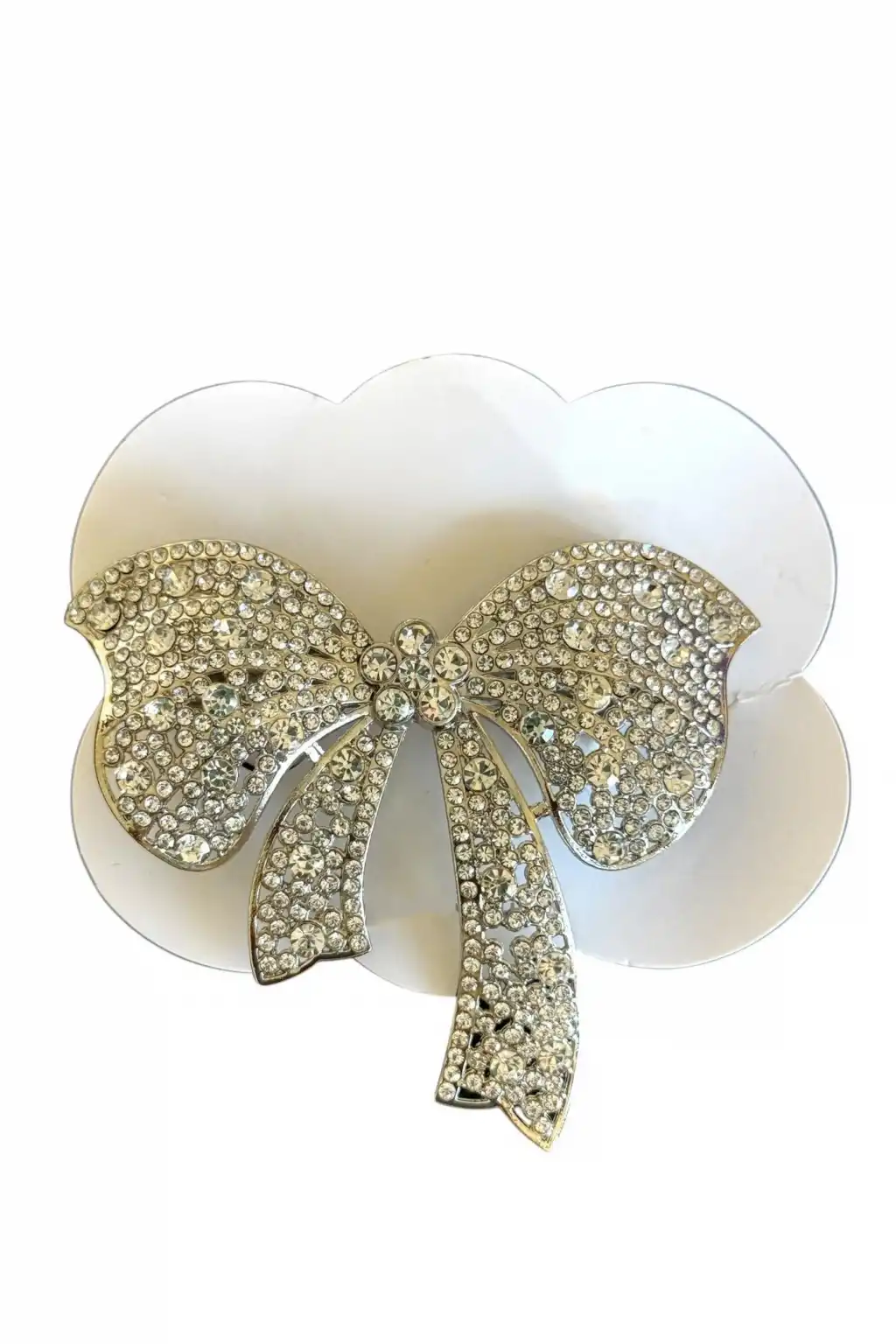 Beyaz Renk Kurdele Figürlü Taş Detaylı Otomat Toka